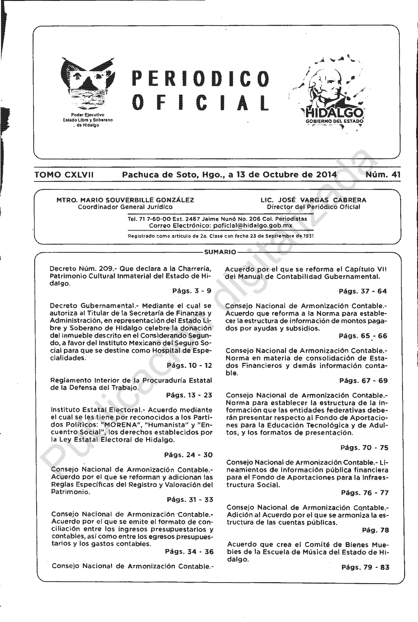 Descargar Periódico Oficial Ordinario 0 del 13 de octubre de 2014