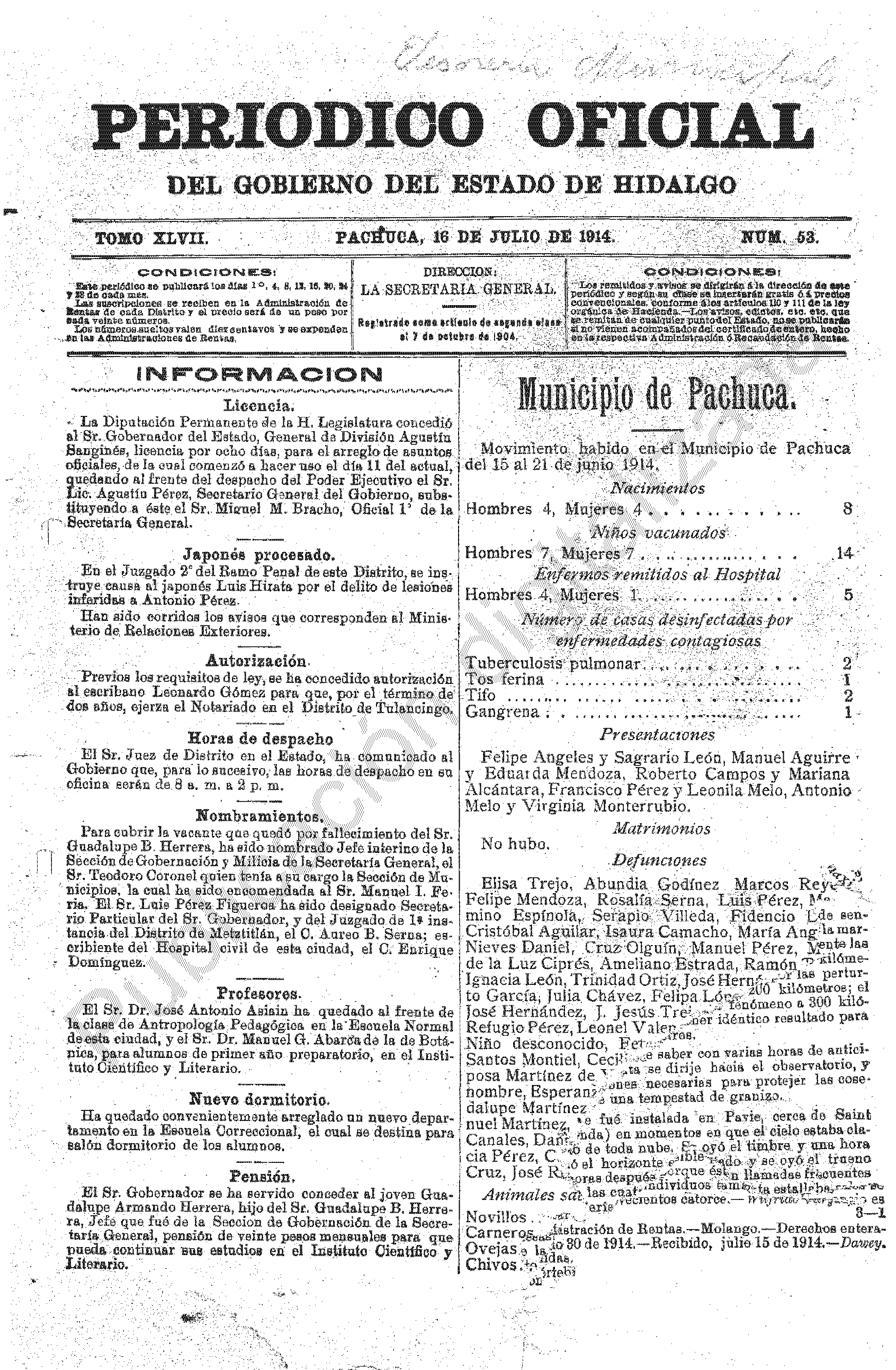 Descargar Periódico Oficial ordinario 0 del 16 de julio de 1914Tamaño 887.27 KB