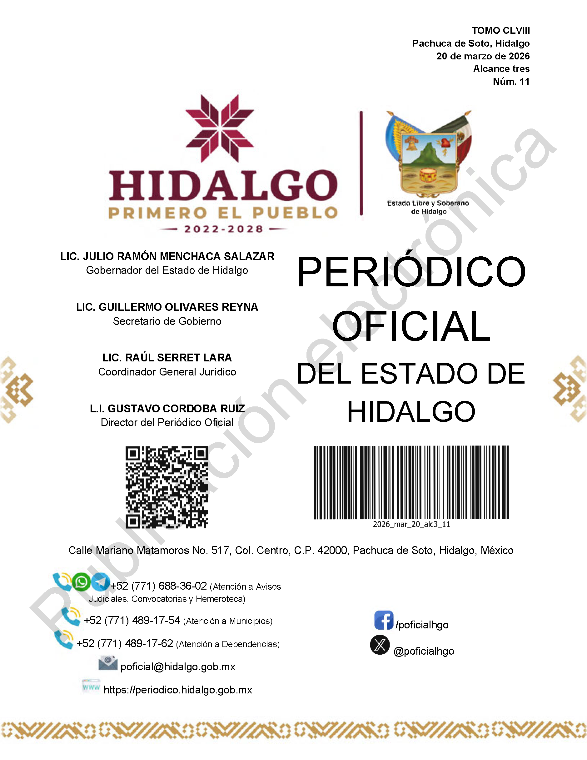 El portal web del Periódico Oficial del Estado de hidalgo es el único medio de difusión oficial del Gobierno del Estado de Hidalgo