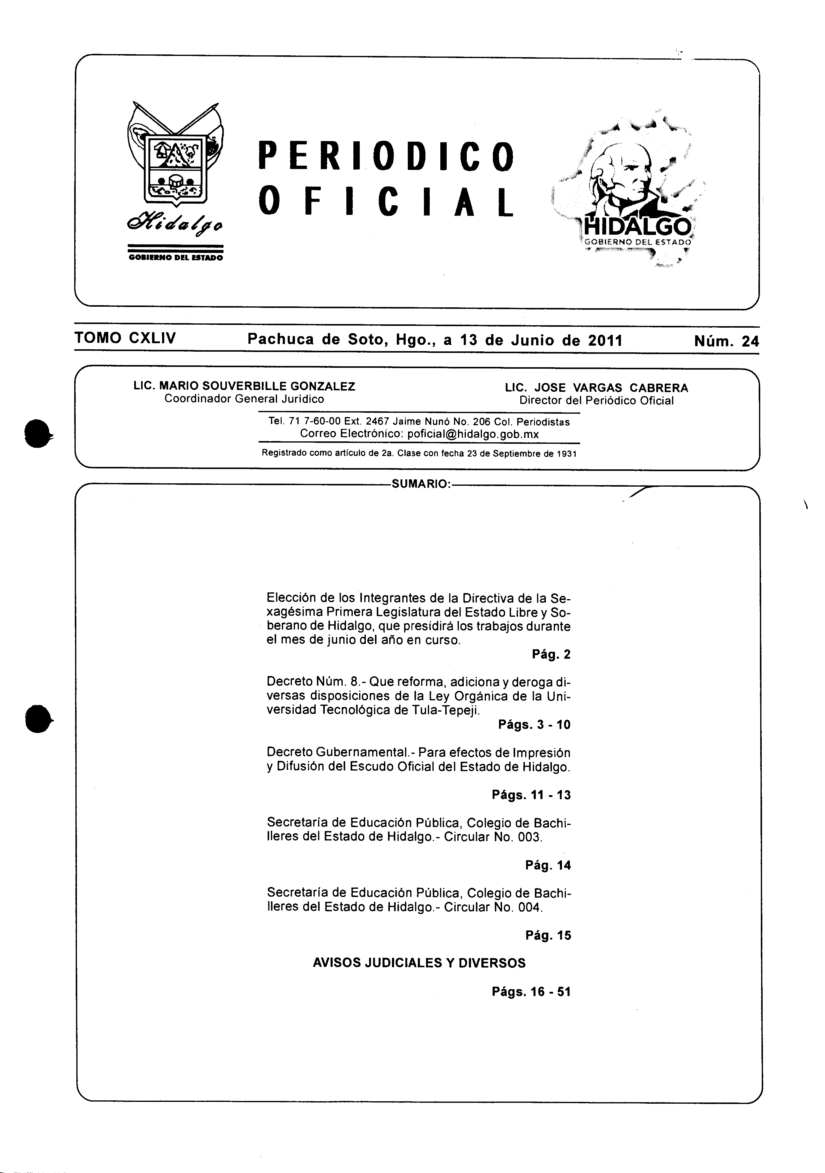 (Artículo 8 de la Ley del Periódico Oficial del Estado de Hidalgo y Artículo 7 de su Reglamento)