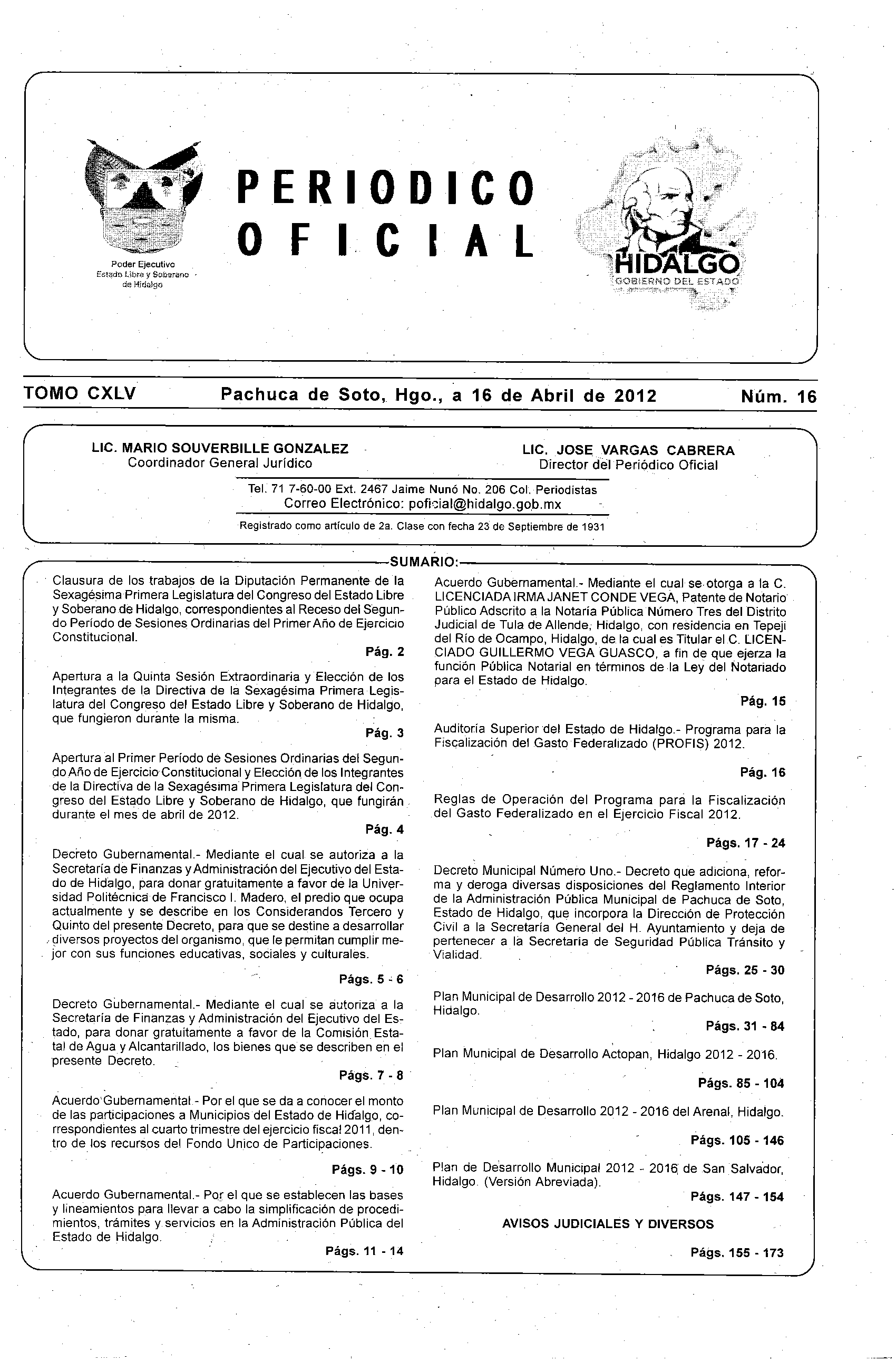 Descargar Periódico Oficial Ordinario 0 del 16 de abril de 2012