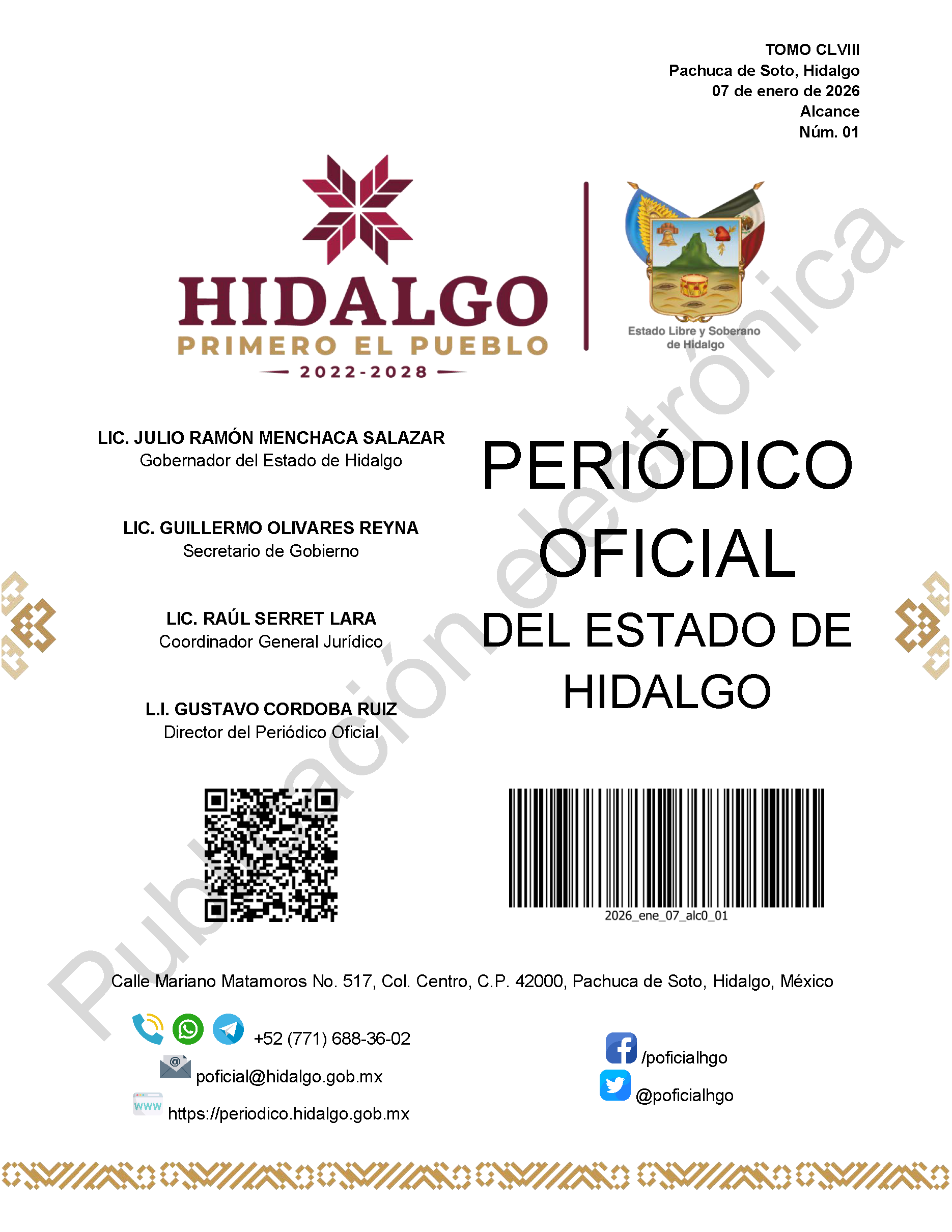 El portal web del Periódico Oficial del Estado de hidalgo es el único medio de difusión oficial del Gobierno del Estado de Hidalgo