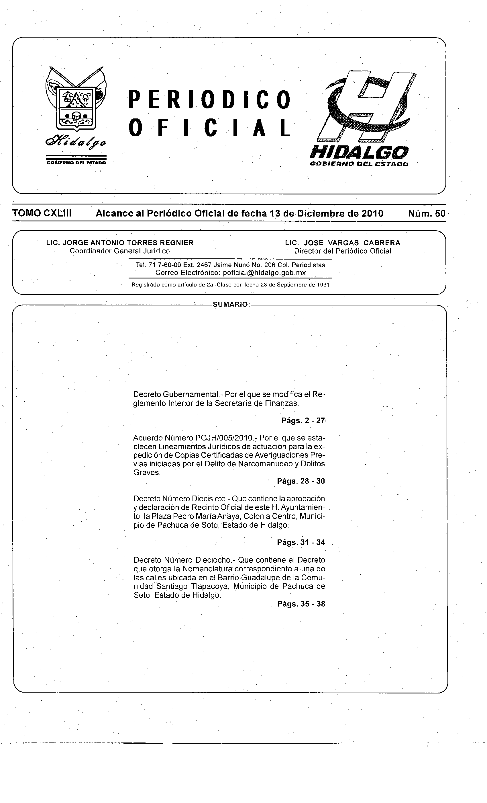 Descargar Periódico Oficial Alcance 0 del 13 de diciembre de 2010