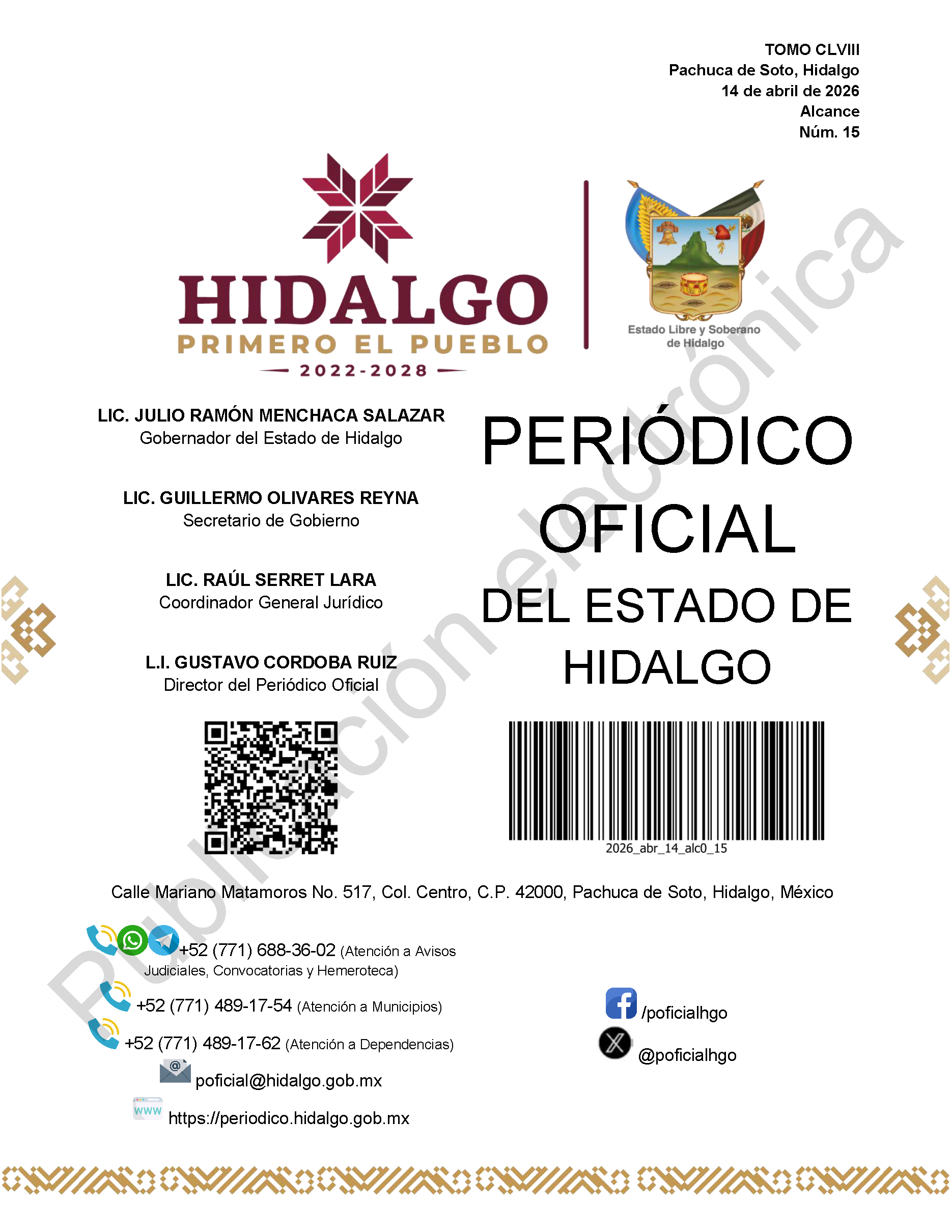 El portal web del Periódico Oficial del Estado de hidalgo es el único medio de difusión oficial del Gobierno del Estado de Hidalgo