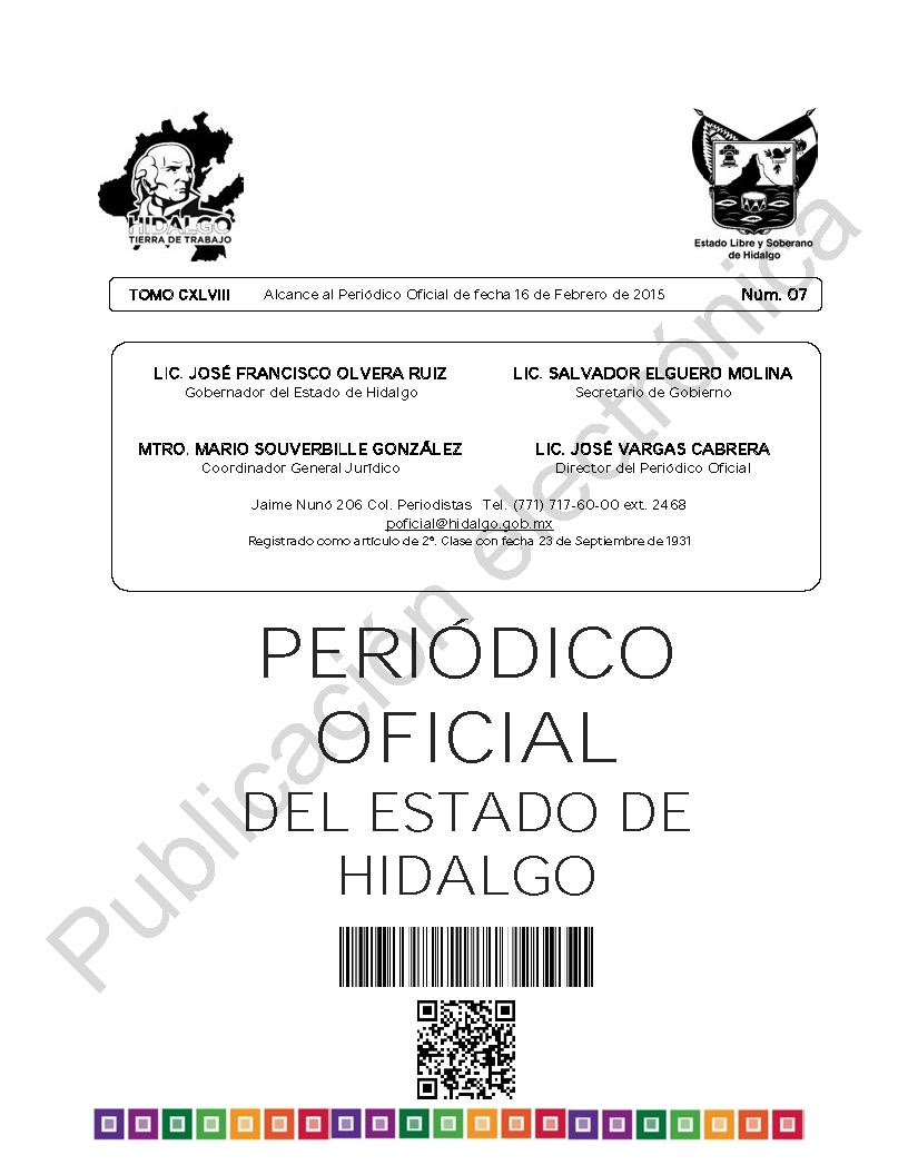 El portal web del Periódico Oficial del Estado de hidalgo es el único medio de difusión oficial del Gobierno del Estado de Hidalgo