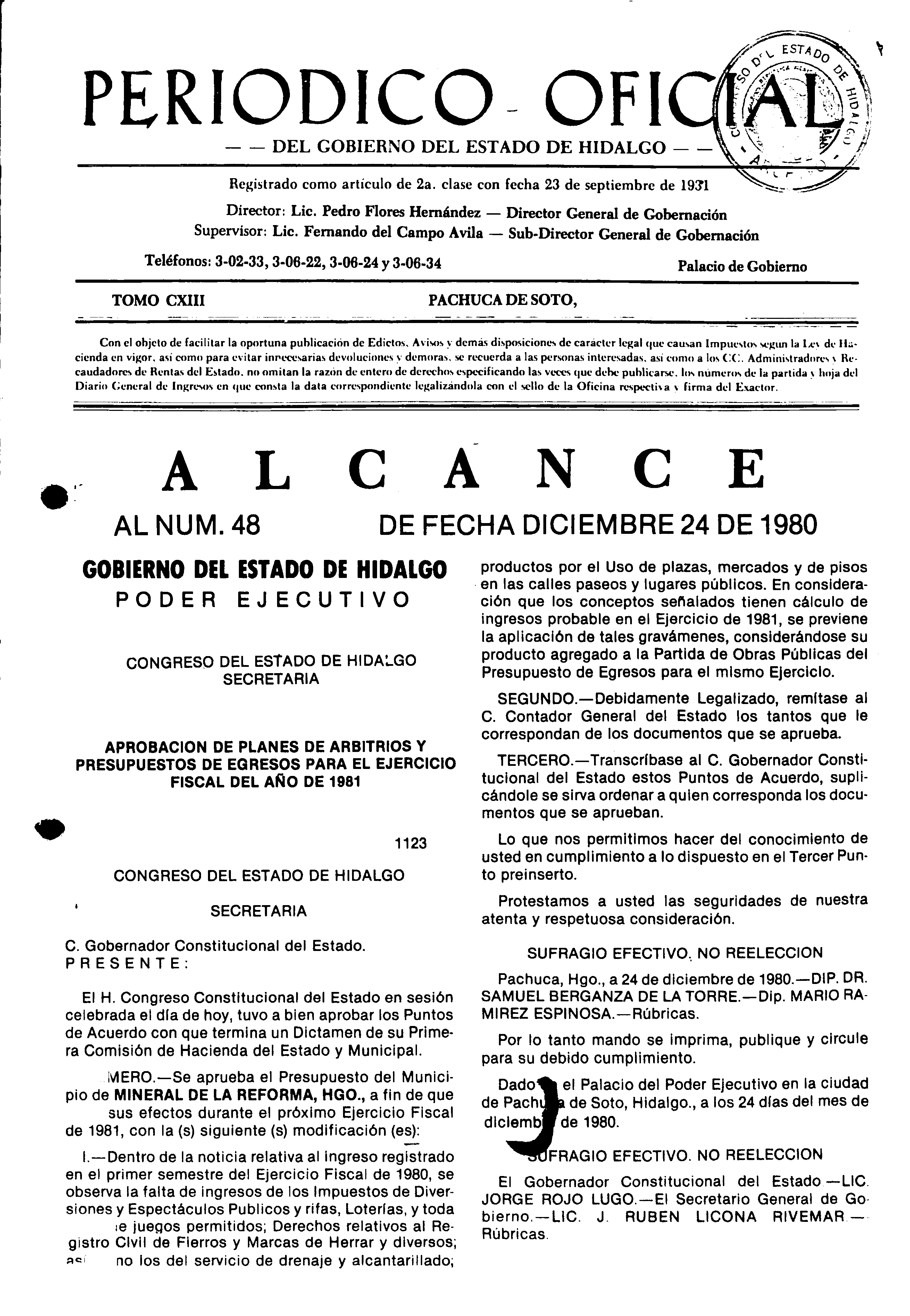 Descargar Periódico Oficial Alcance 0 del 24 de diciembre de 1980