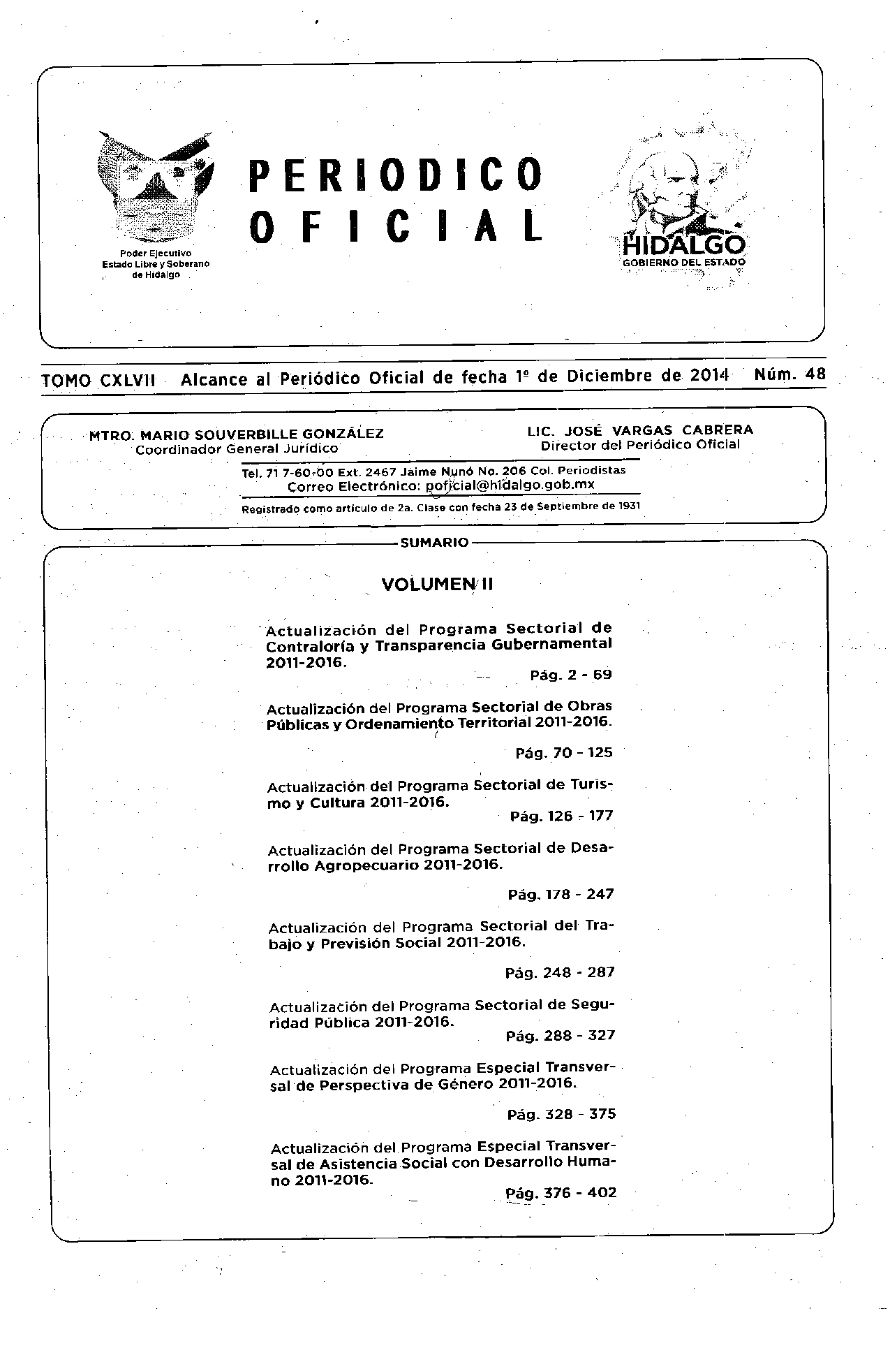 Periódico Oficial Alcance 0 Volumen 2 del 01 de diciembre de 2014