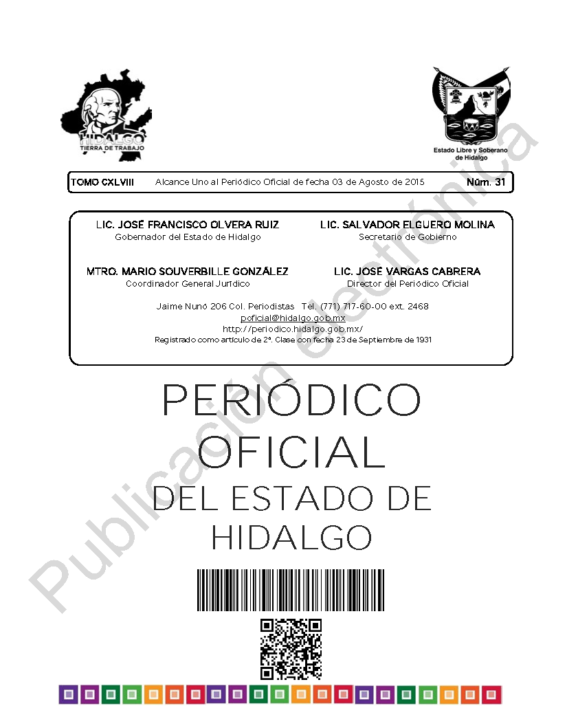 El portal web del Periódico Oficial del Estado de hidalgo es el único medio de difusión oficial del Gobierno del Estado de Hidalgo