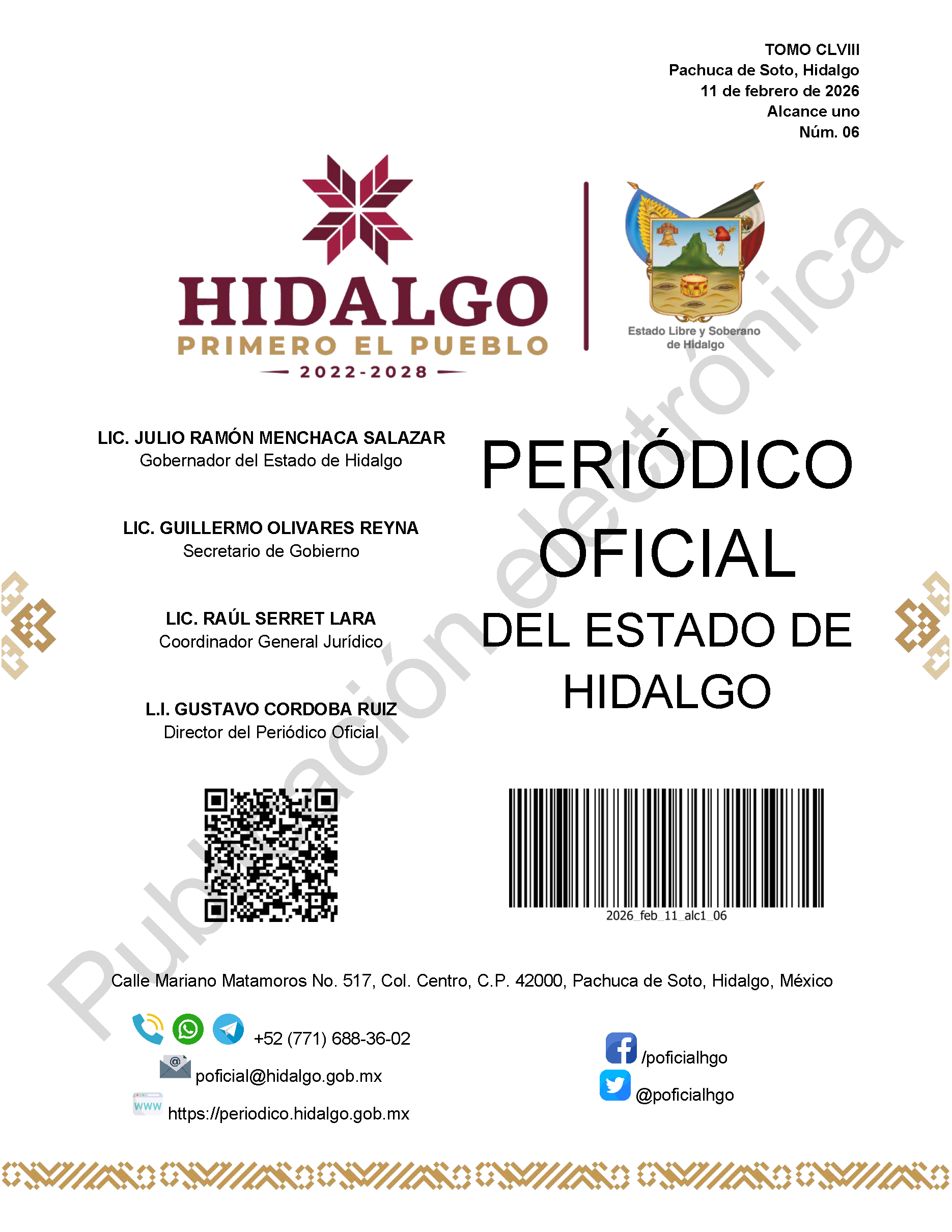 El portal web del Periódico Oficial del Estado de hidalgo es el único medio de difusión oficial del Gobierno del Estado de Hidalgo