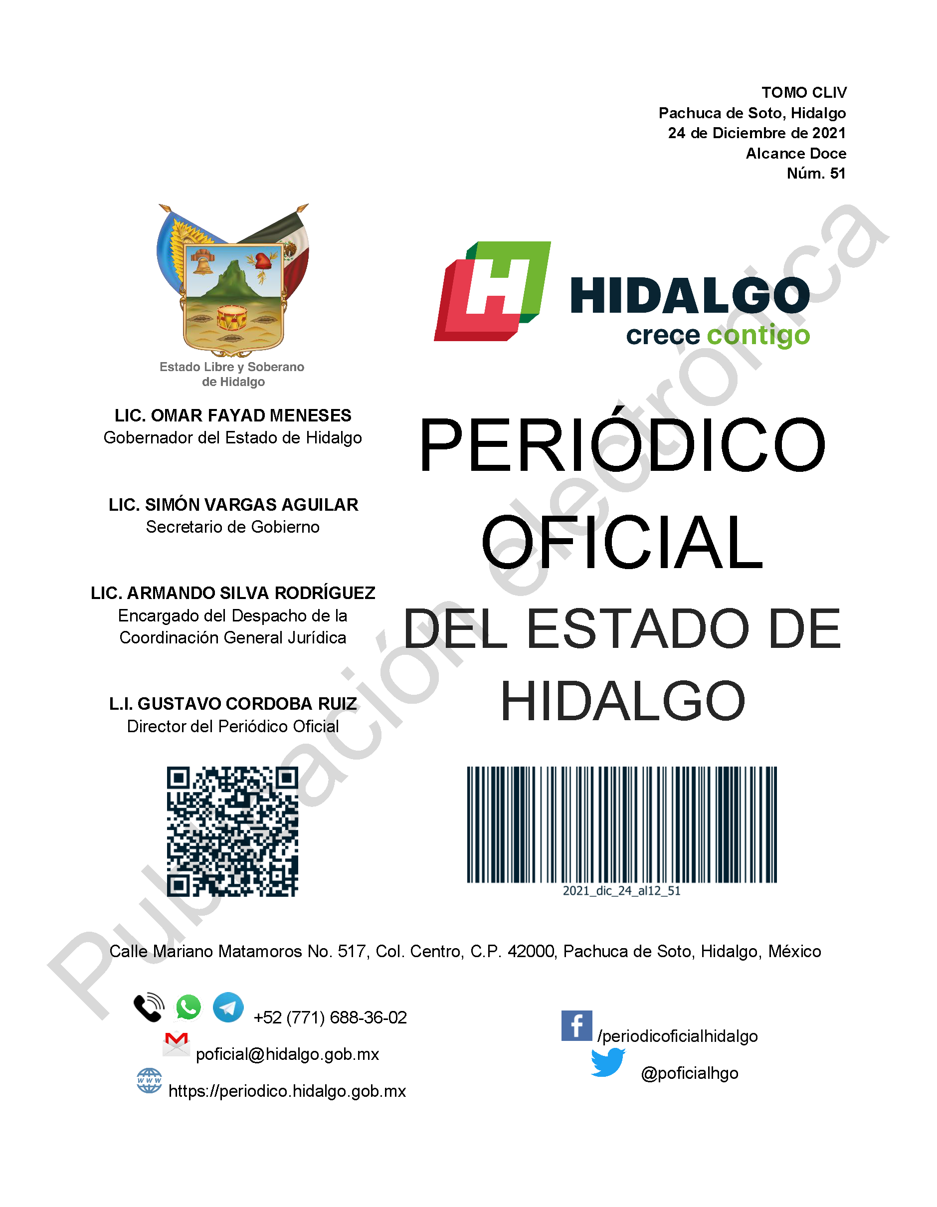 Periódico Oficial Alcance 12 del 24 de diciembre de 2021