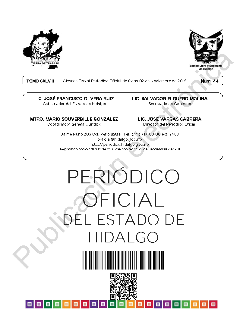 El portal web del Periódico Oficial del Estado de hidalgo es el único medio de difusión oficial del Gobierno del Estado de Hidalgo