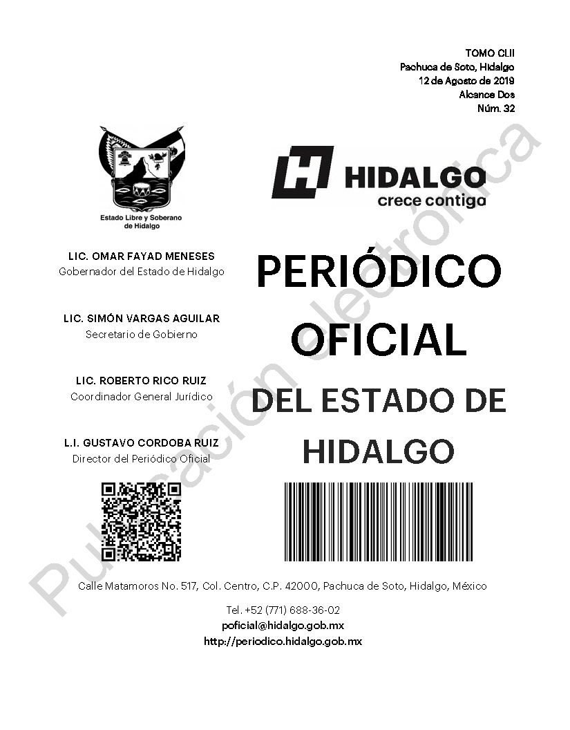El portal web del Periódico Oficial del Estado de hidalgo es el único medio de difusión oficial del Gobierno del Estado de Hidalgo