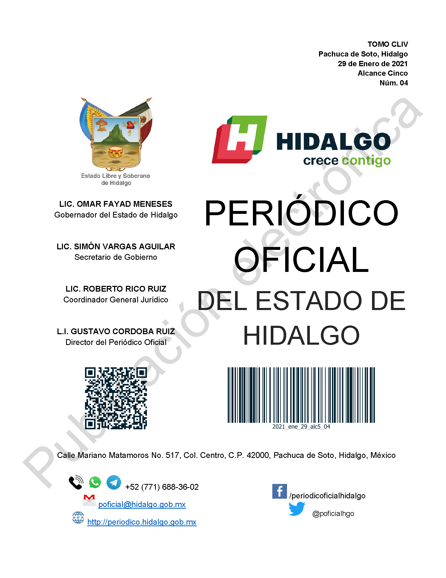 El portal web del Periódico Oficial del Estado de hidalgo es el único medio de difusión oficial del Gobierno del Estado de Hidalgo