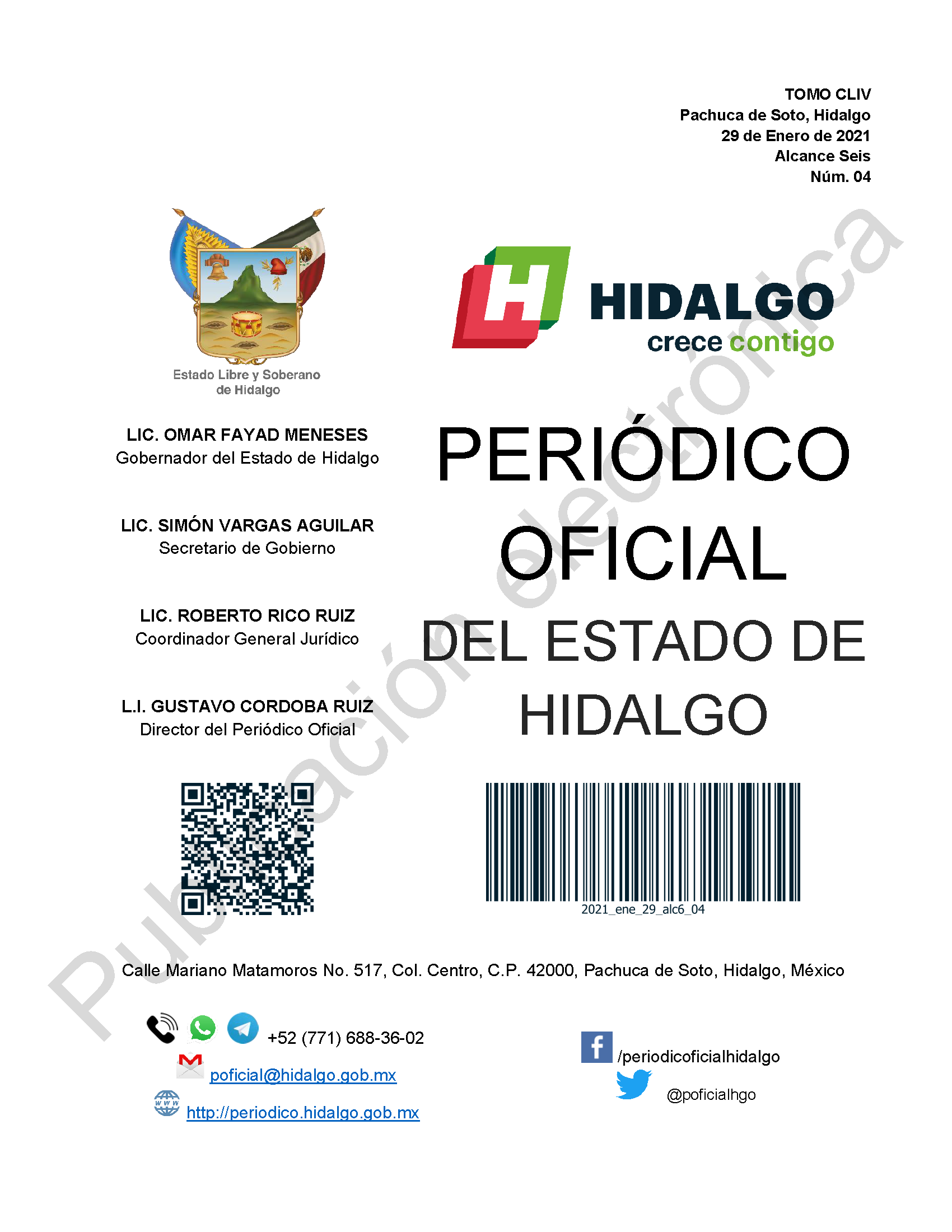 El portal web del Periódico Oficial del Estado de hidalgo es el único medio de difusión oficial del Gobierno del Estado de Hidalgo