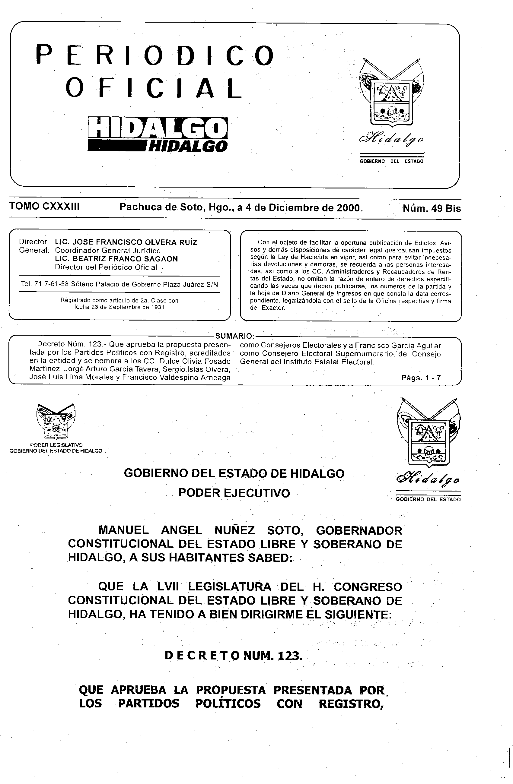 Descargar Periódico Oficial Bis 0 del 04 de diciembre de 2000