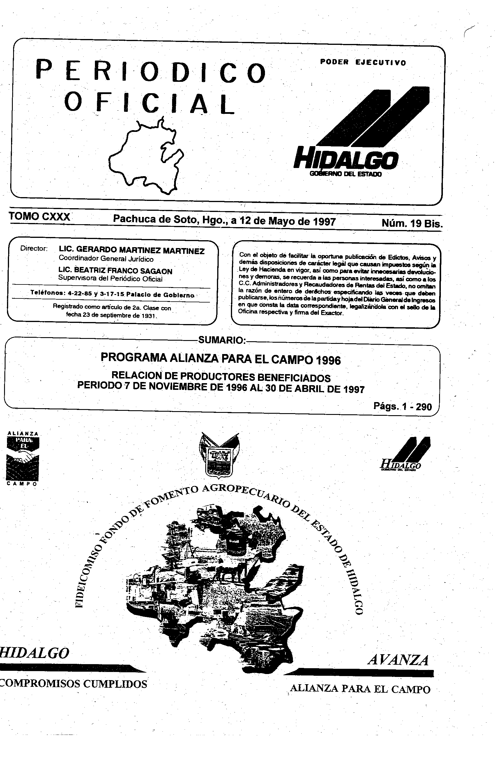 Descargar Periódico Oficial Bis 0 del 12 de mayo de 1997