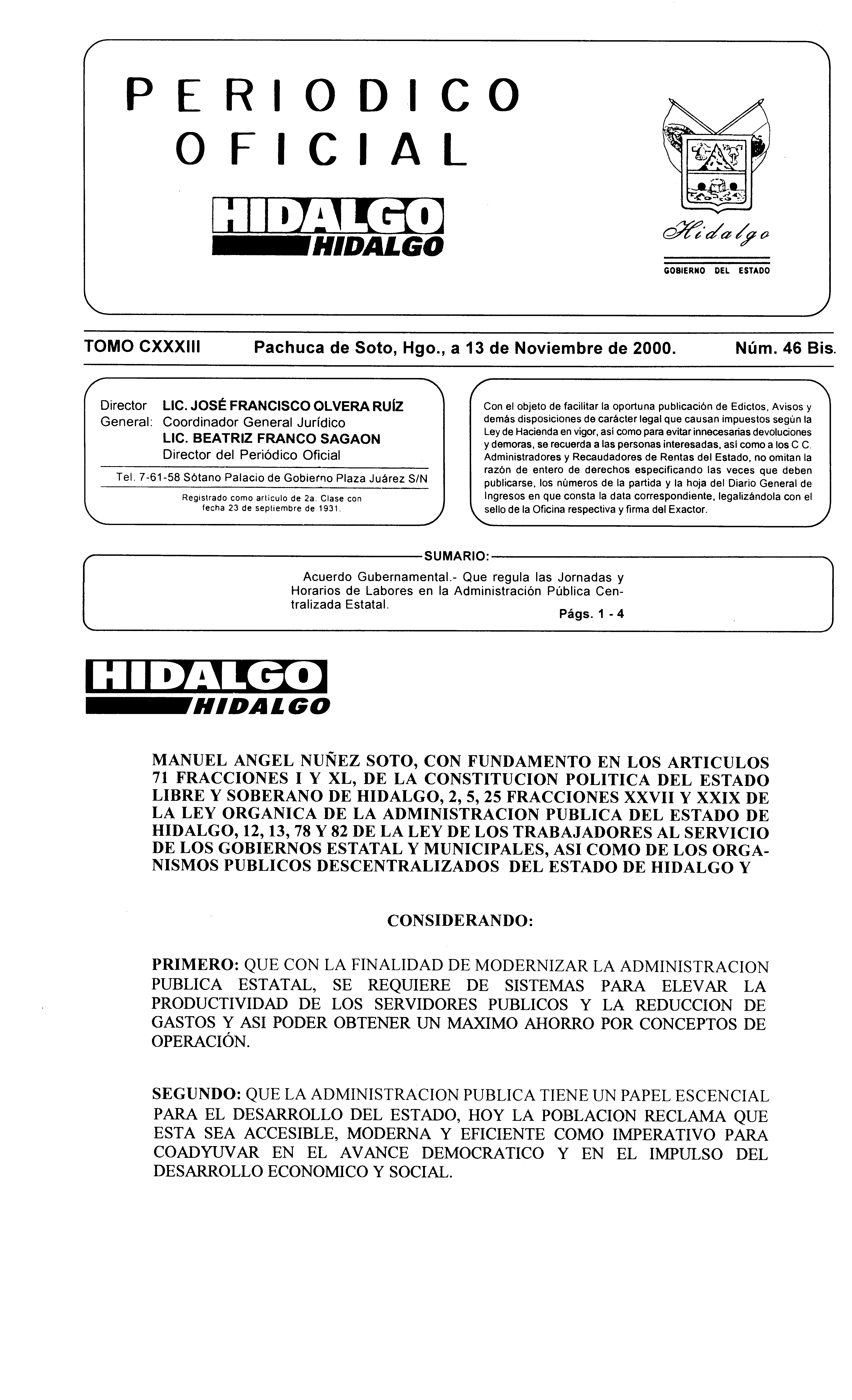 Descargar Periódico Oficial Bis 0 del 13 de noviembre de 2000