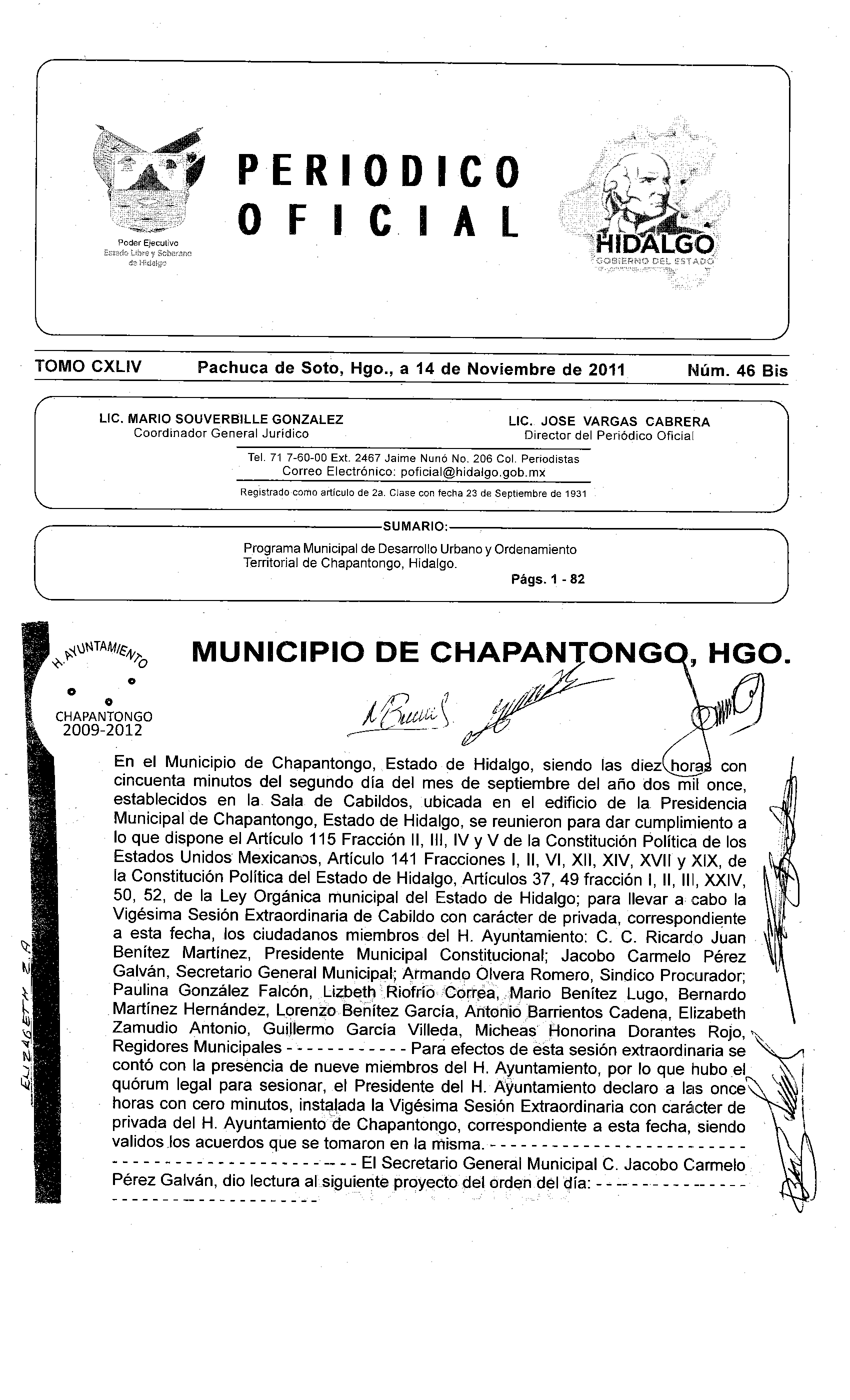 - Programa Municipal de Desarrollo Urbano y Ordenamiento Territorial de Chapantongo, Hidalgo.