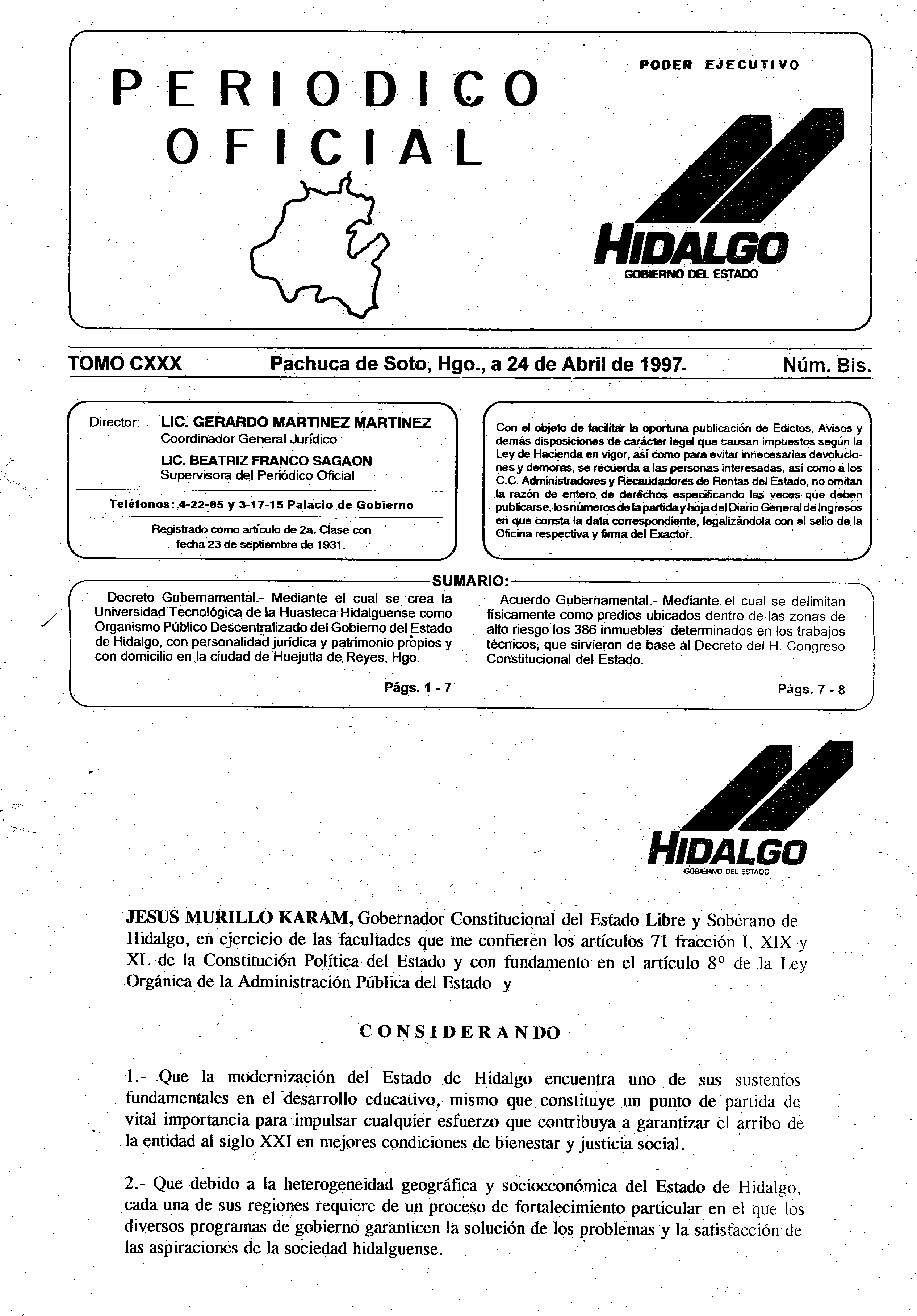 El portal web del Periódico Oficial del Estado de hidalgo es el único medio de difusión oficial del Gobierno del Estado de Hidalgo
