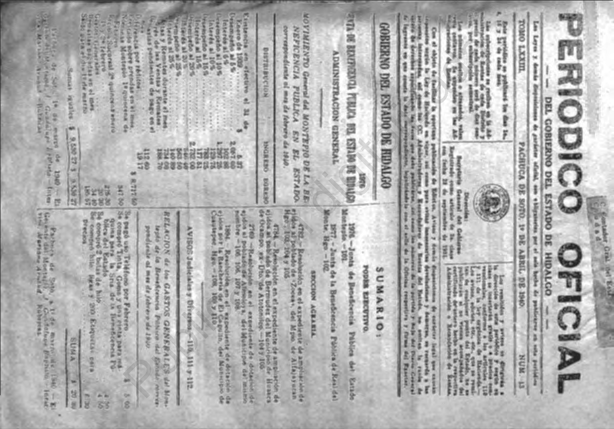 Descargar Periódico Oficial Ordinario 0 del 01 de abril de 1940