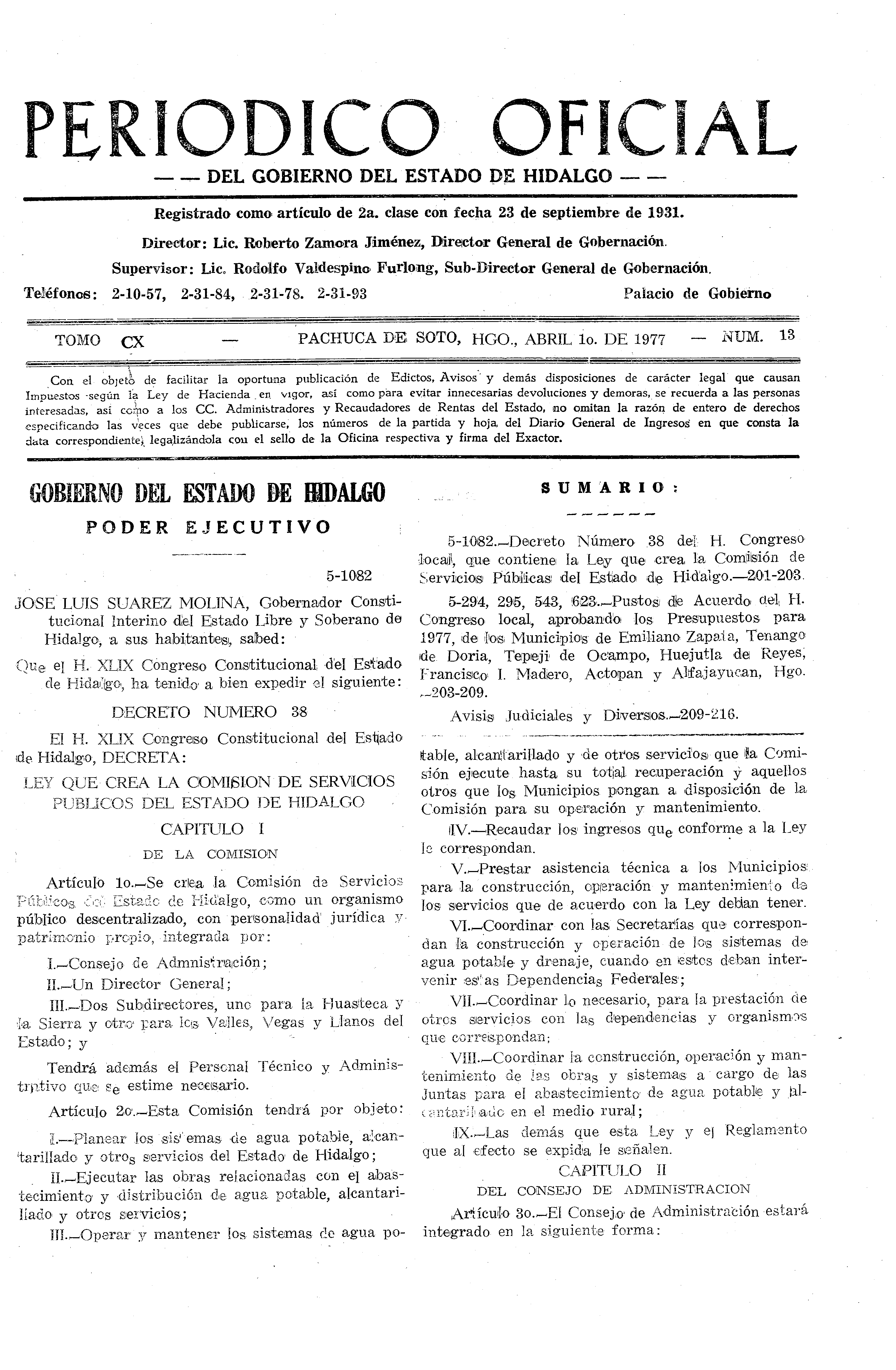 Descargar Periódico Oficial Ordinario 0 del 01 de abril de 1977
