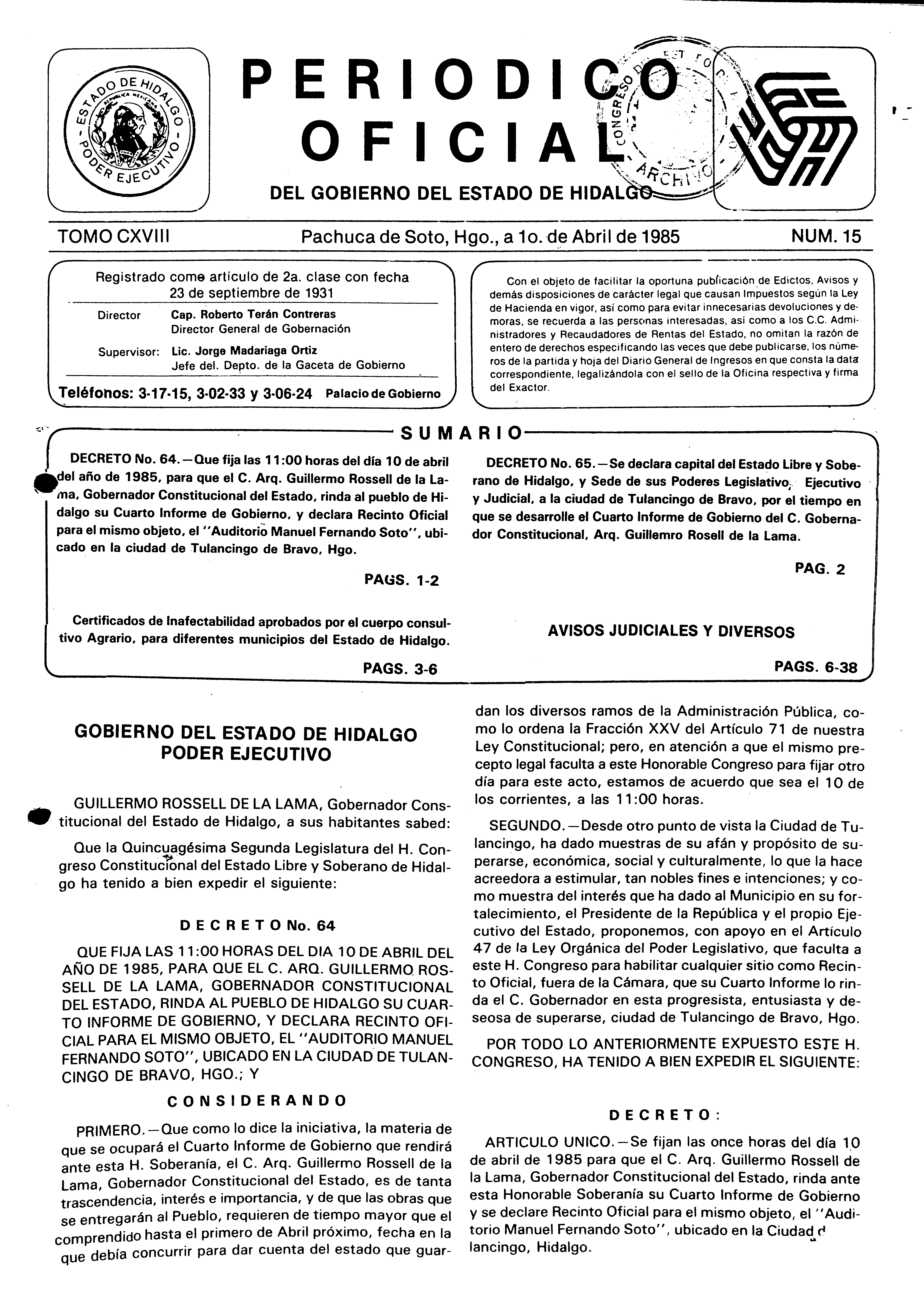 Descargar Periódico Oficial Ordinario 0 del 01 de abril de 1985