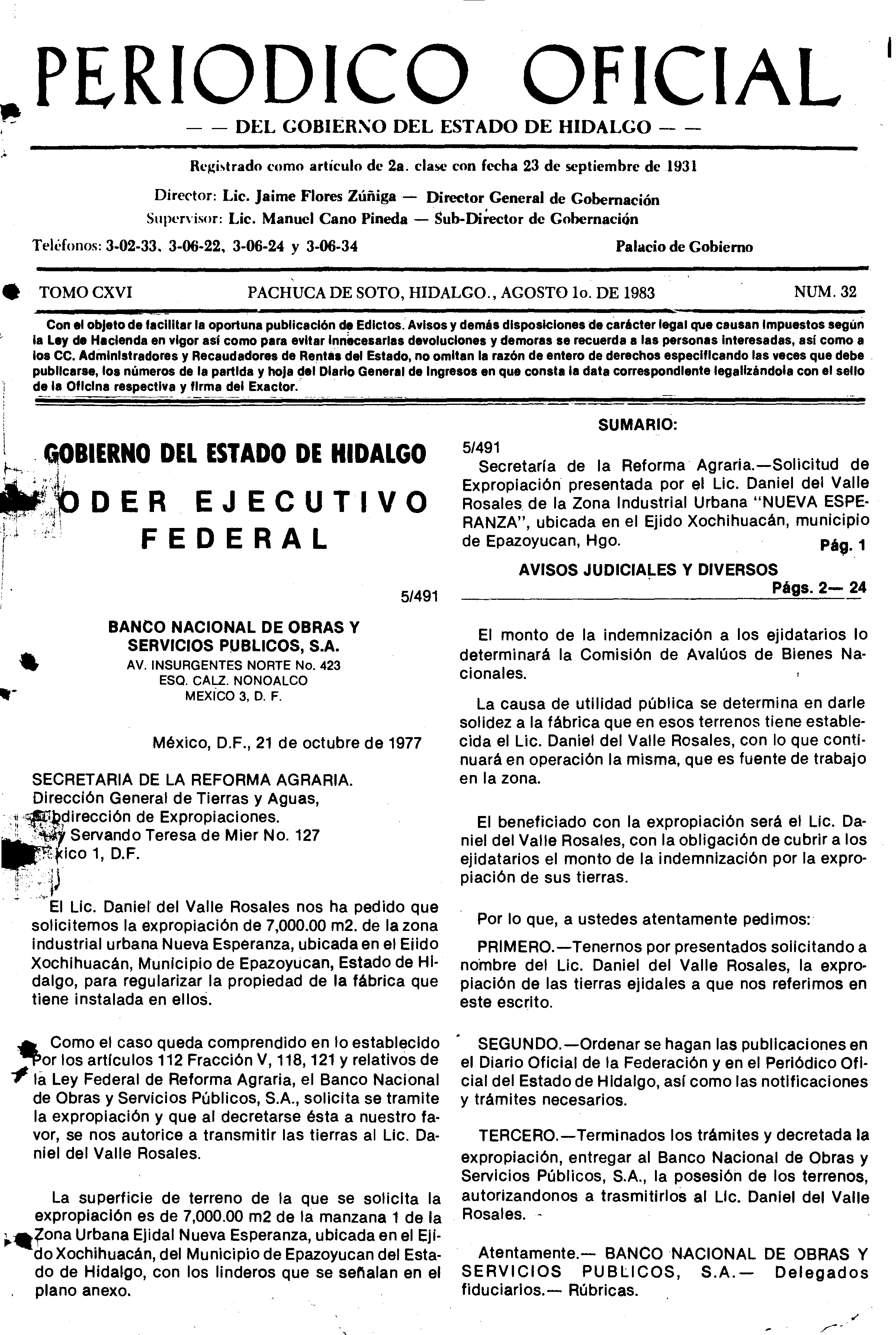 Descargar Periódico Oficial Ordinario 0 del 01 de agosto de 1983