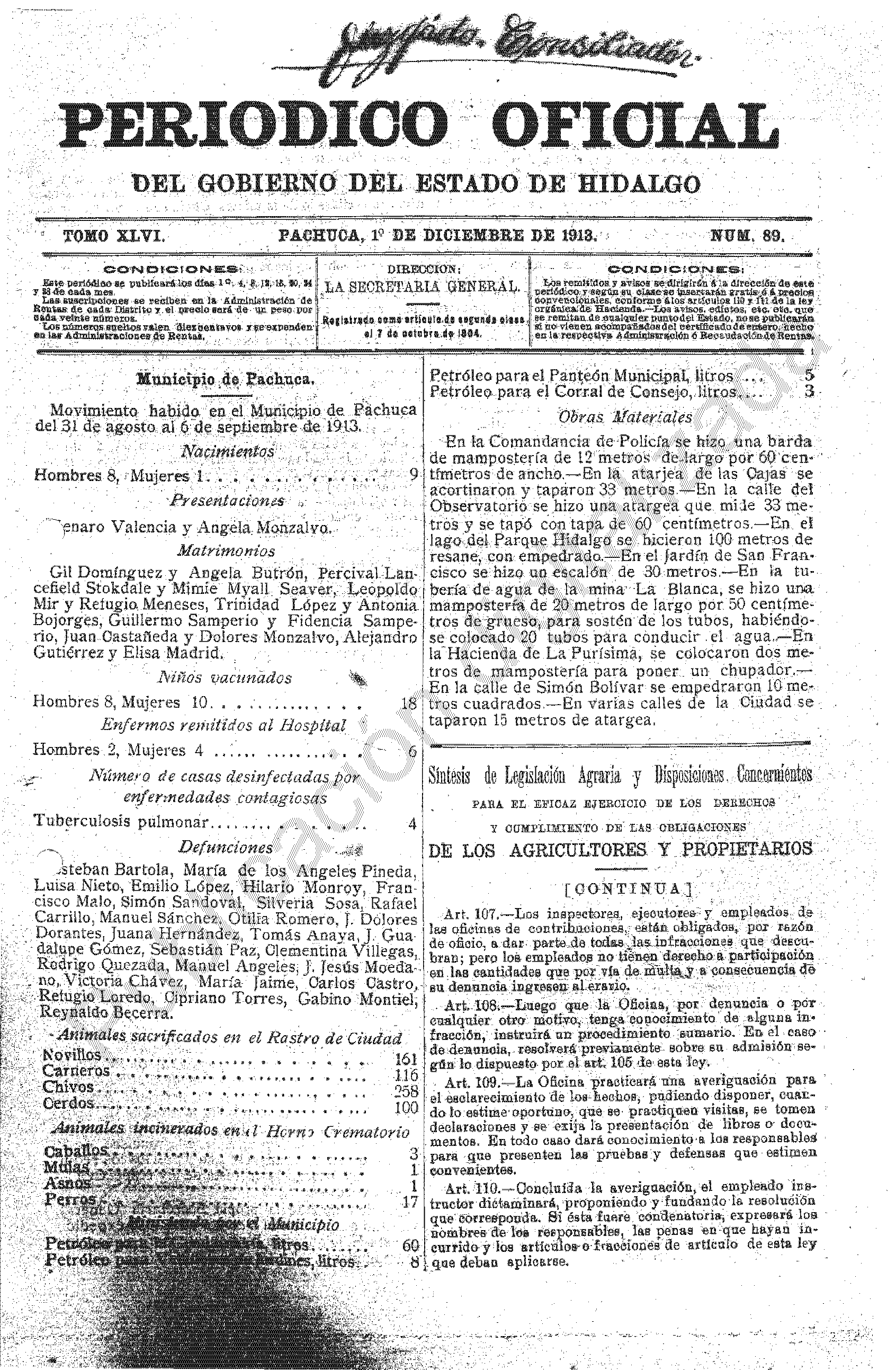 Descargar Periódico Oficial Ordinario 0 del 01 de diciembre de 1913Tamaño 1.09 MB