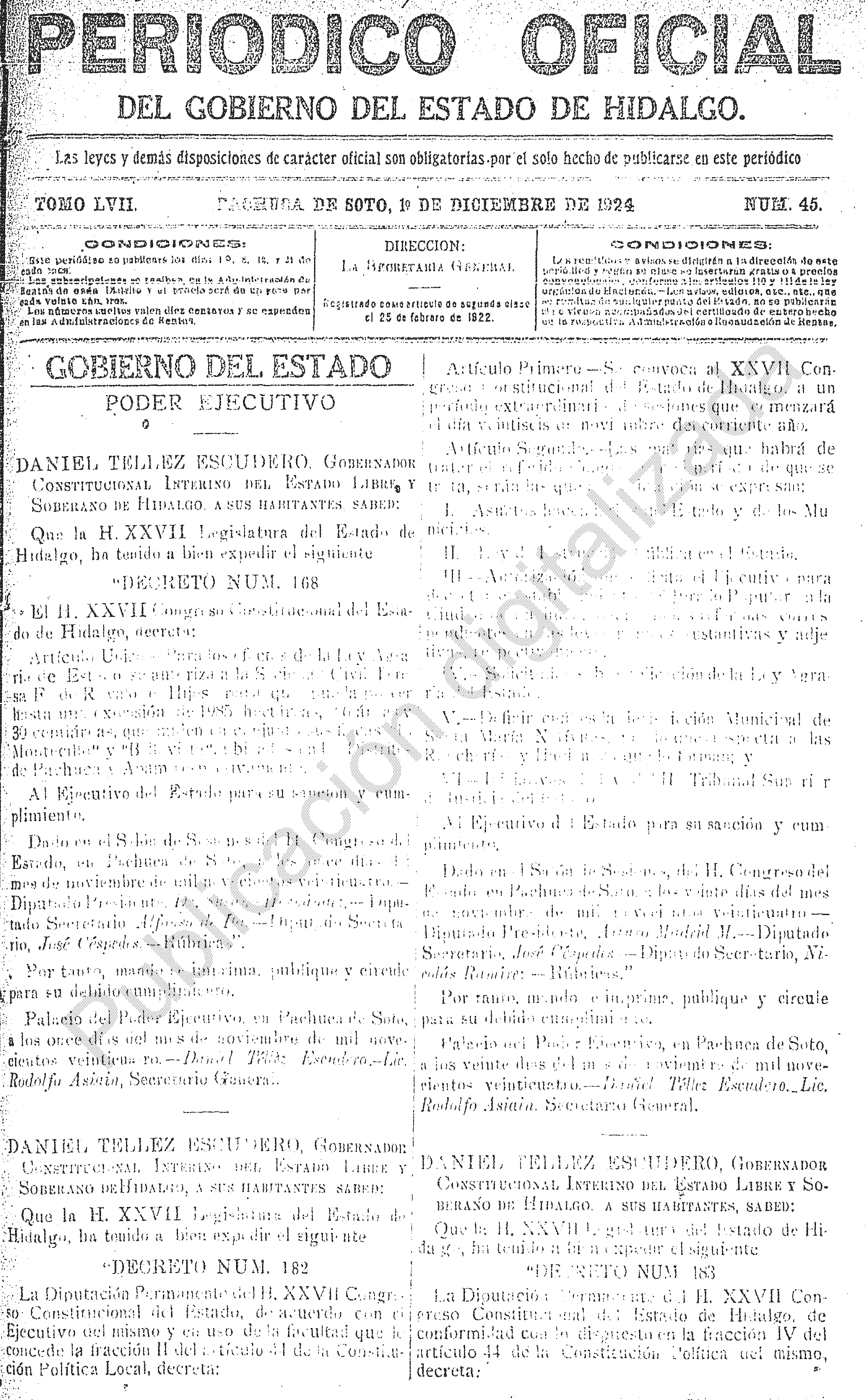 Descargar Periódico Oficial Ordinario 0 del 01 de diciembre de 1924