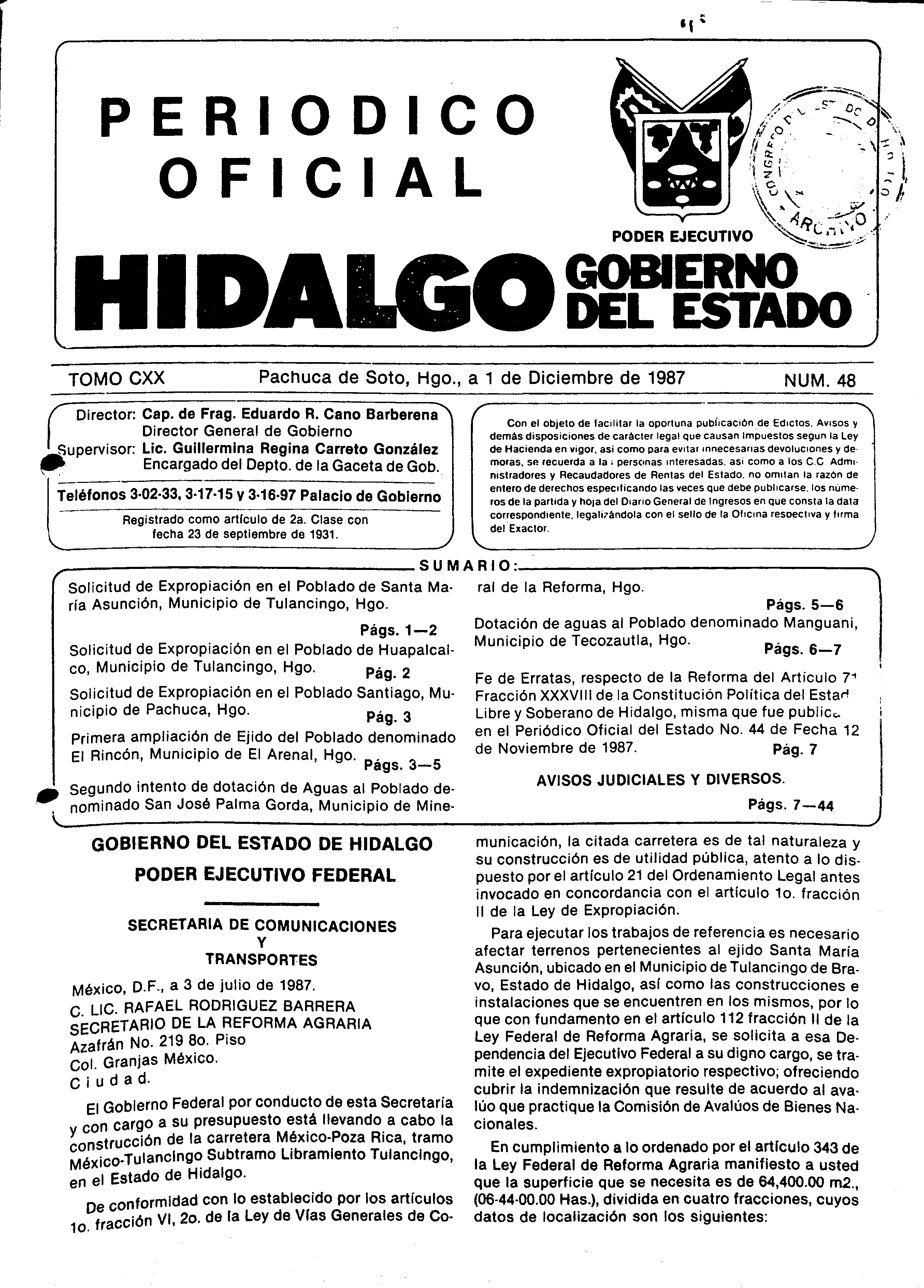 Descargar Periódico Oficial Ordinario 0 del 01 de diciembre de 1987
