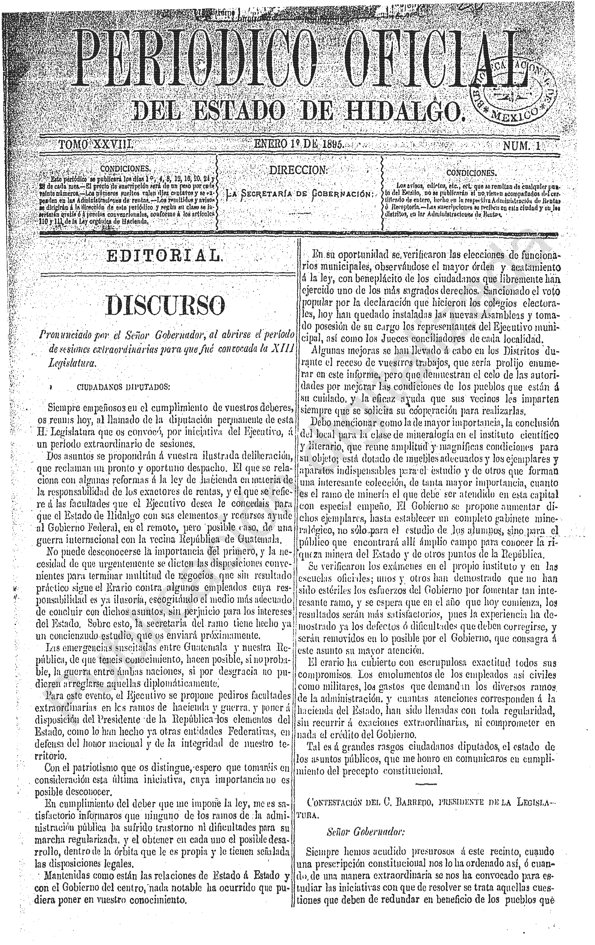 Descargar Periódico Oficial Ordinario 0 del 01 de enero de 1895Tamaño 1.16 MB