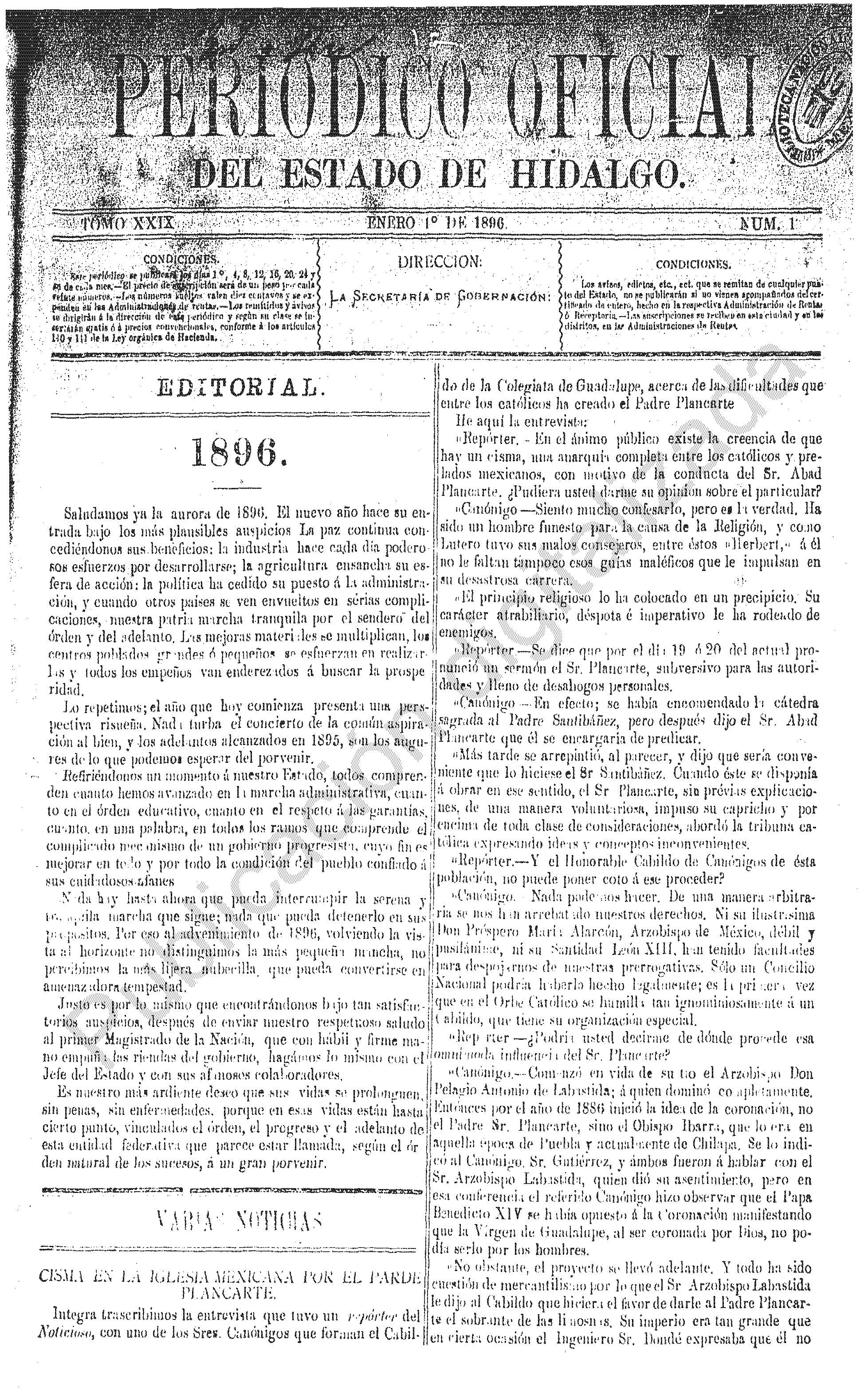 Descargar Periódico Oficial Ordinario 0 del 01 de enero de 1896Tamaño 988.67 KB