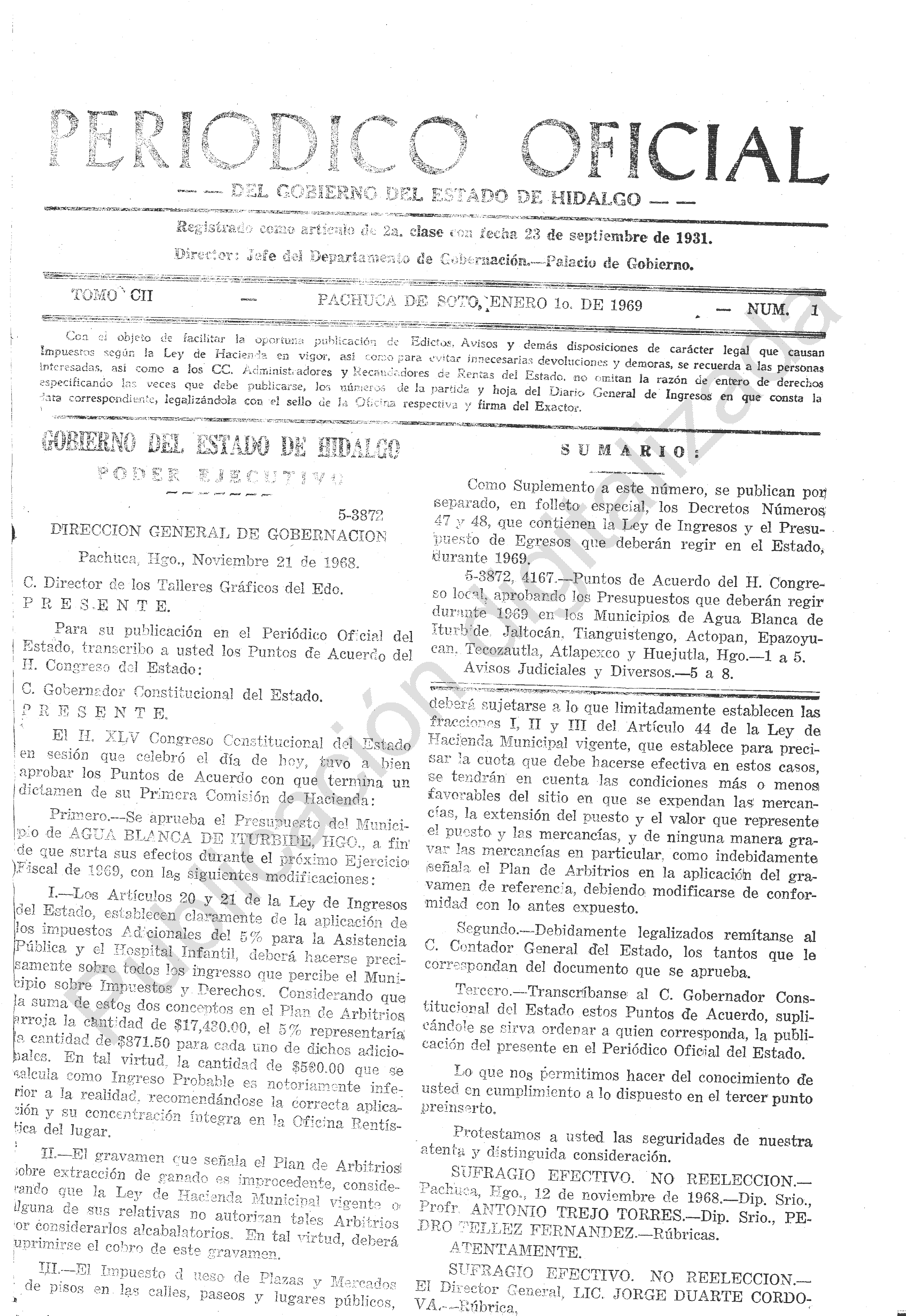 Descargar Periódico Oficial Ordinario 0 del 01 de enero de 1969