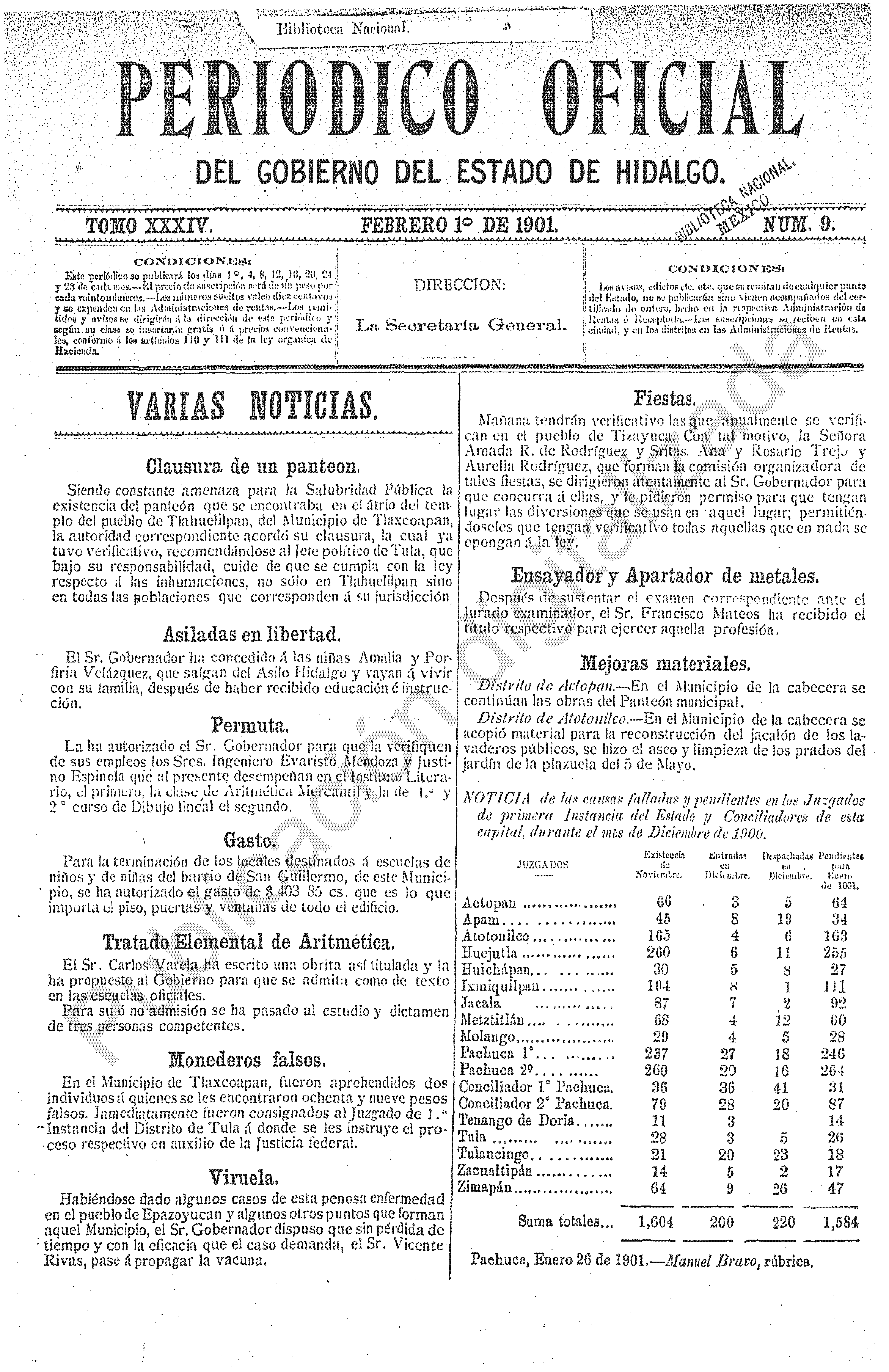 Descargar Periódico Oficial Ordinario 0 del 01 de febrero de 1901Tamaño 997.69 KB