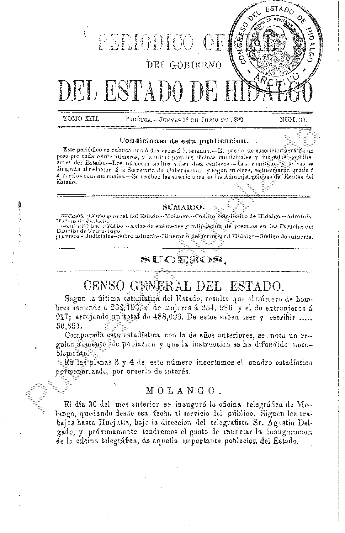 Descargar Periódico Oficial Ordinario 0 del 01 de junio de 1882El portal web del Periódico Oficial del Estado de hidalgo es el único medio de difusión oficial del Gobierno del Estado de Hidalgo