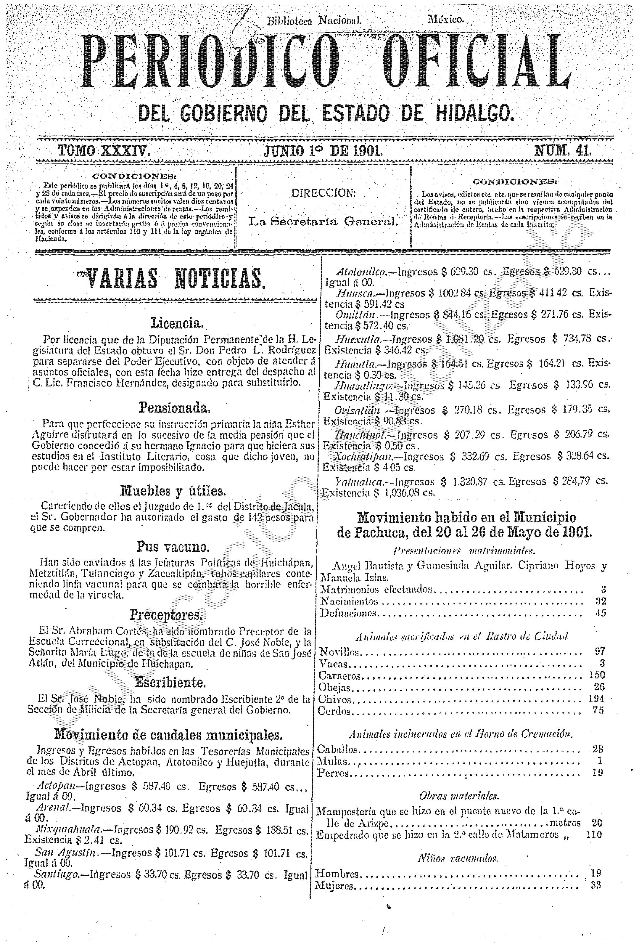Descargar Periódico Oficial Ordinario 0 del 01 de junio de 1901