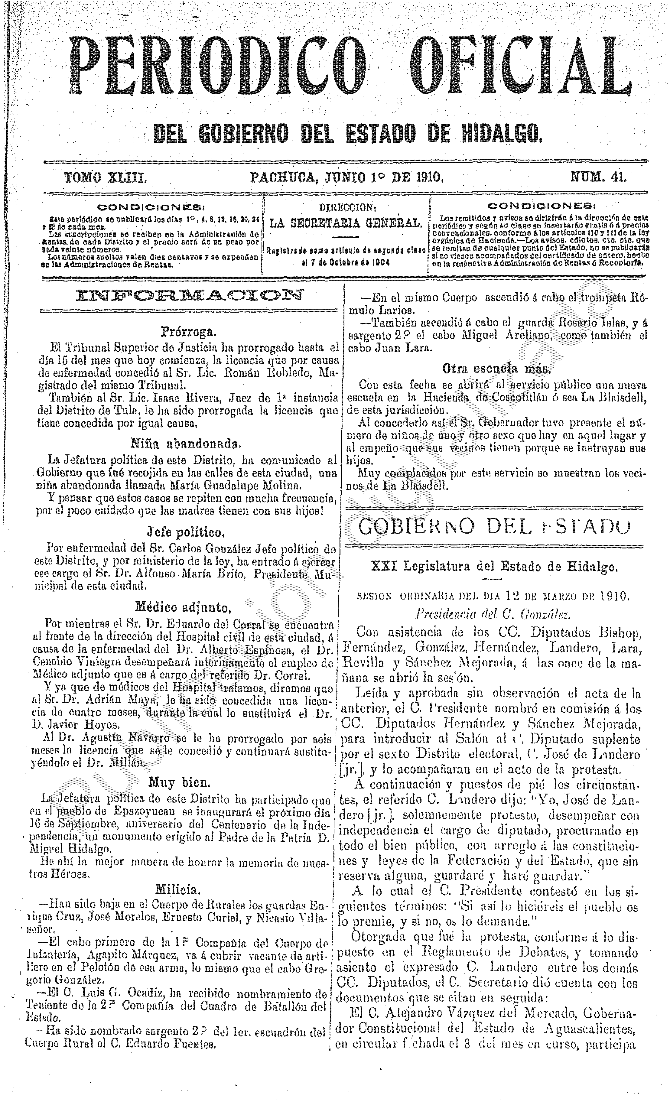 Descargar Periódico Oficial ordinario 0 del 01 de junio de 1910Tamaño 769.07 KB