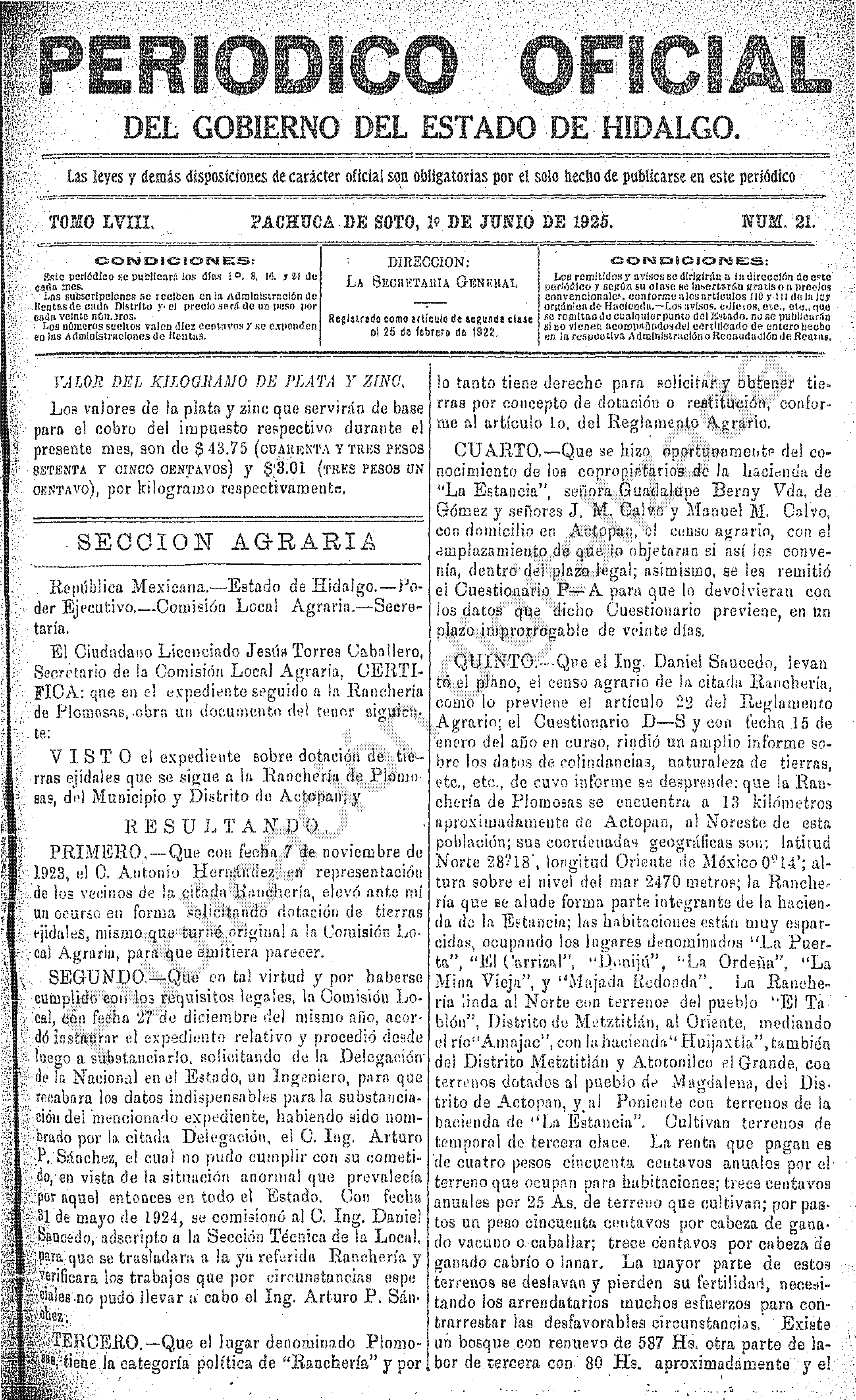 Descargar Periódico Oficial Ordinario 0 del 01 de junio de 1925