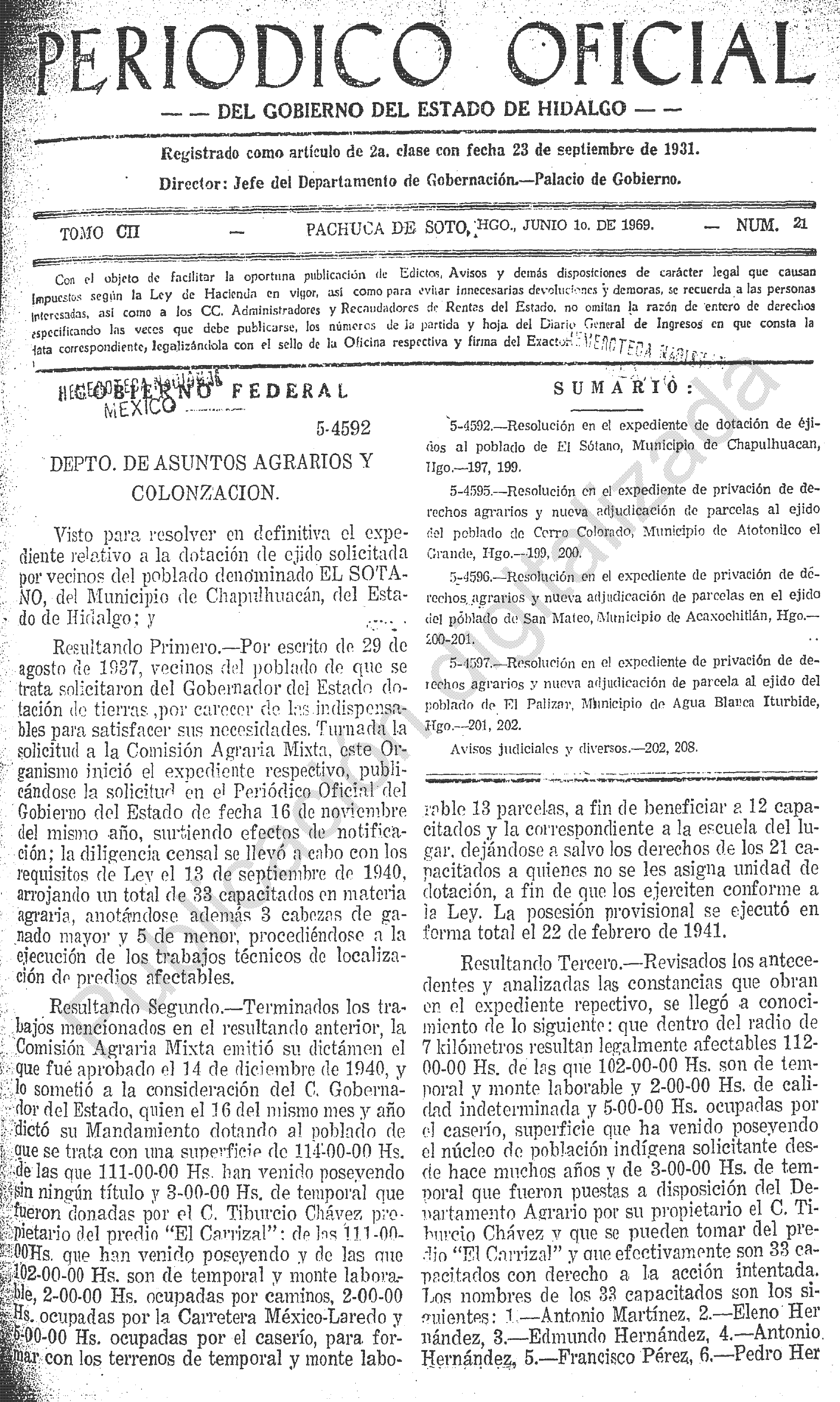 Descargar Periódico Oficial Ordinario 0 del 01 de junio de 1969