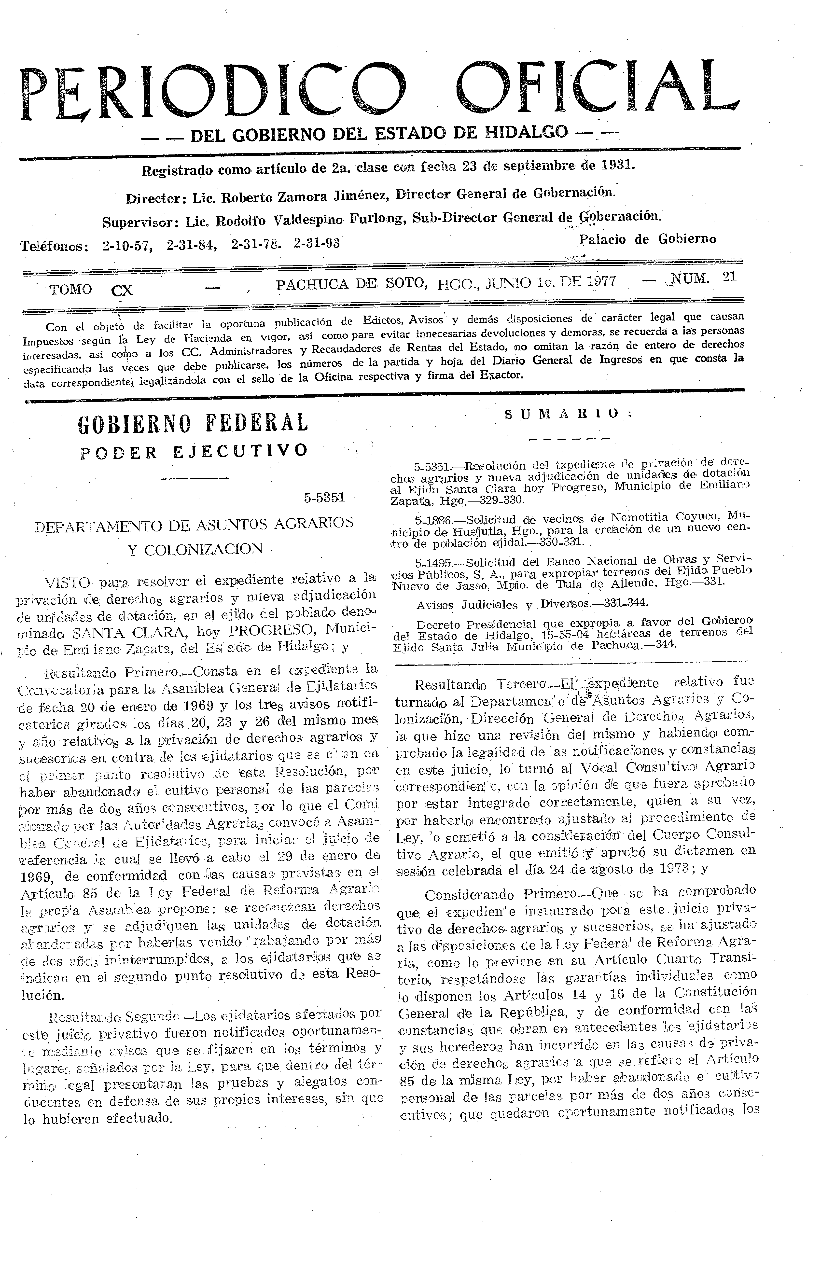 Descargar Periódico Oficial Ordinario 0 del 01 de junio de 1977