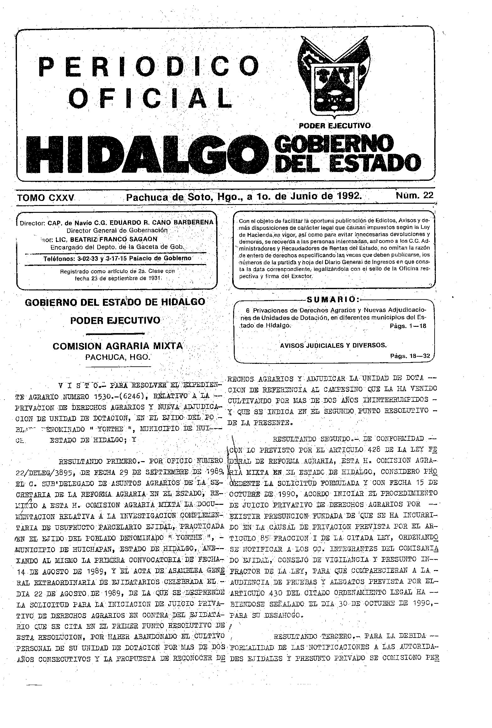 Descargar Periódico Oficial Ordinario 0 del 01 de junio de 1992