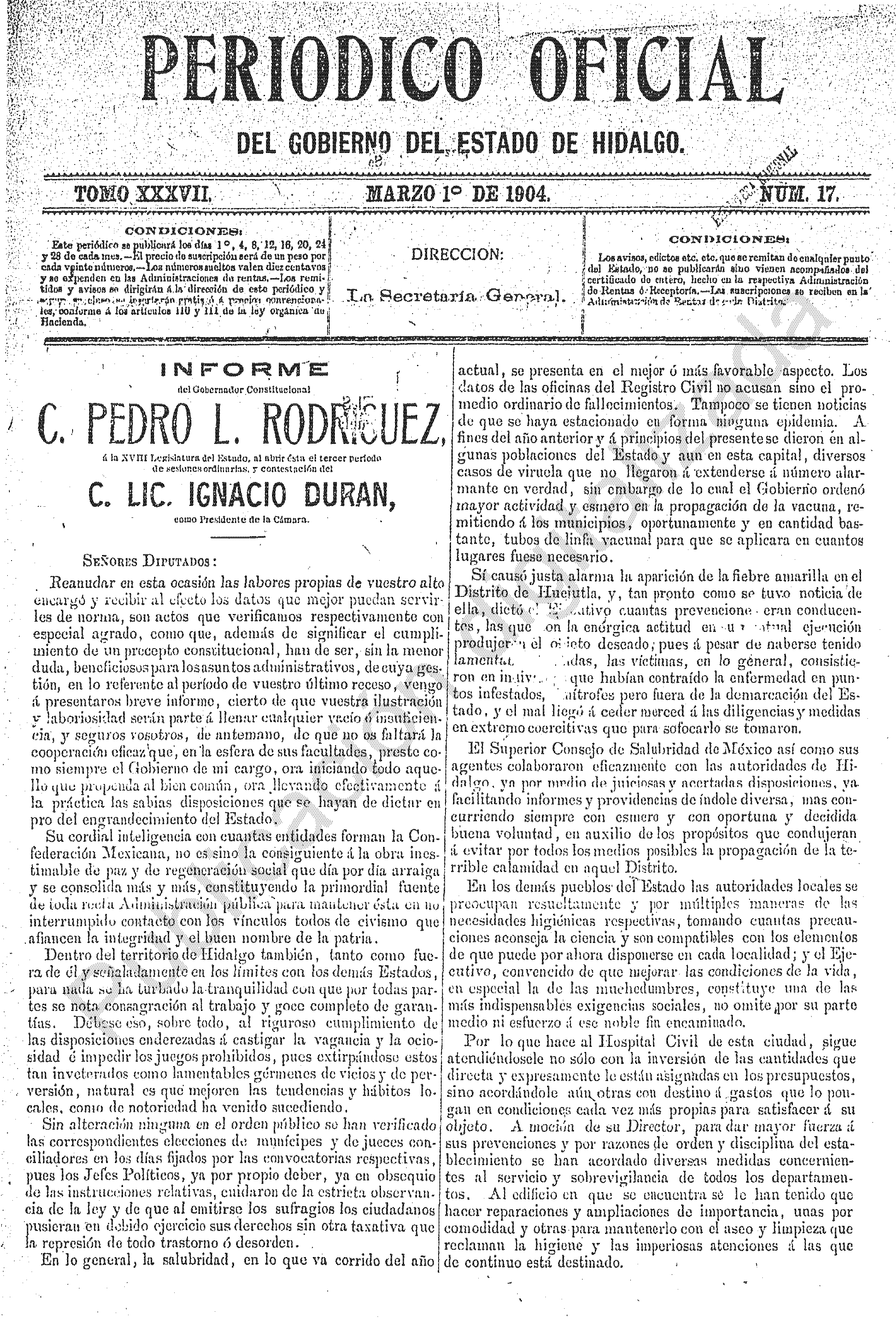 Descargar Periódico Oficial Ordinario 0 del 01 de marzo de 1904Tamaño 1.18 MB
