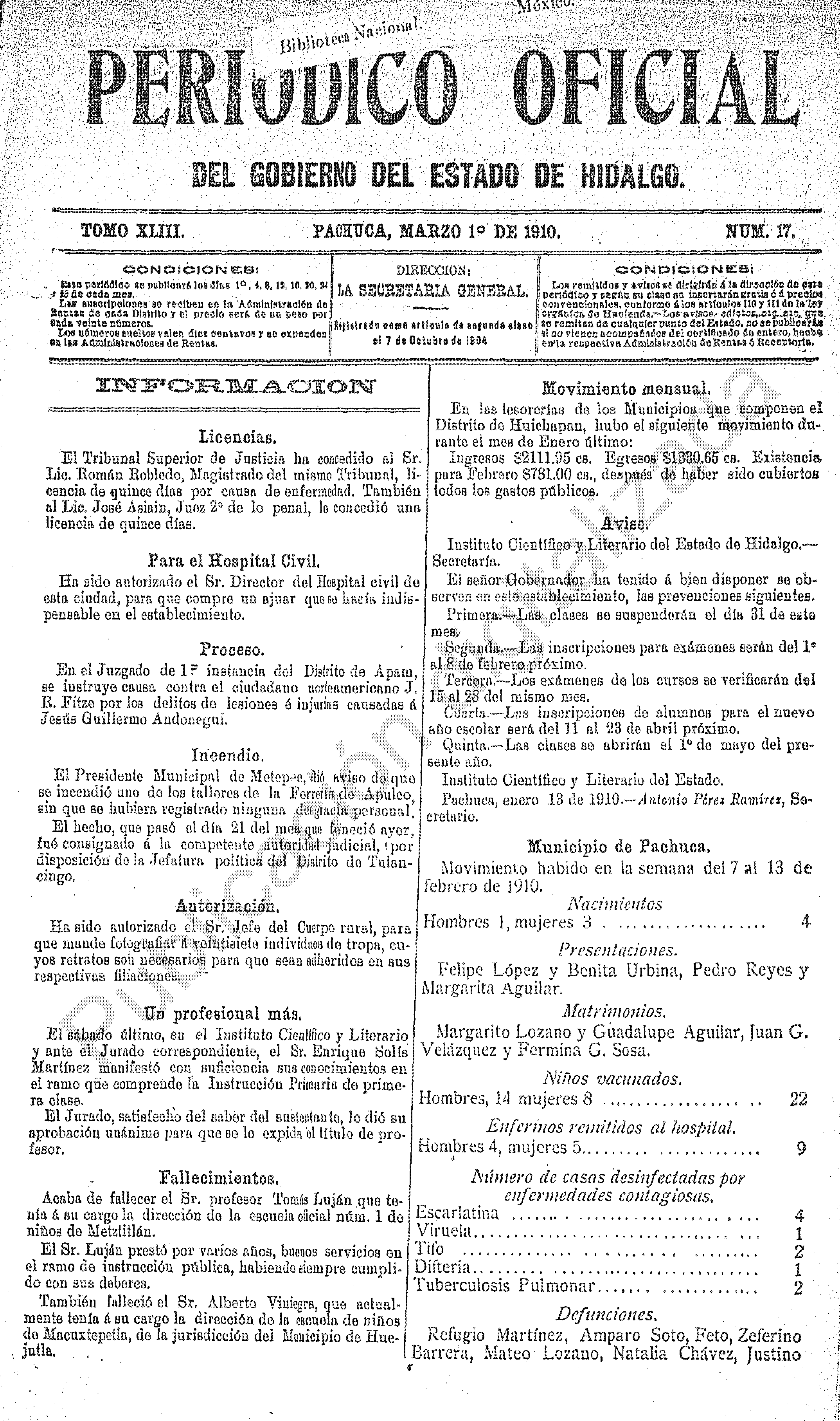 Descargar Periódico Oficial Ordinario 0 del 01 de marzo de 1910