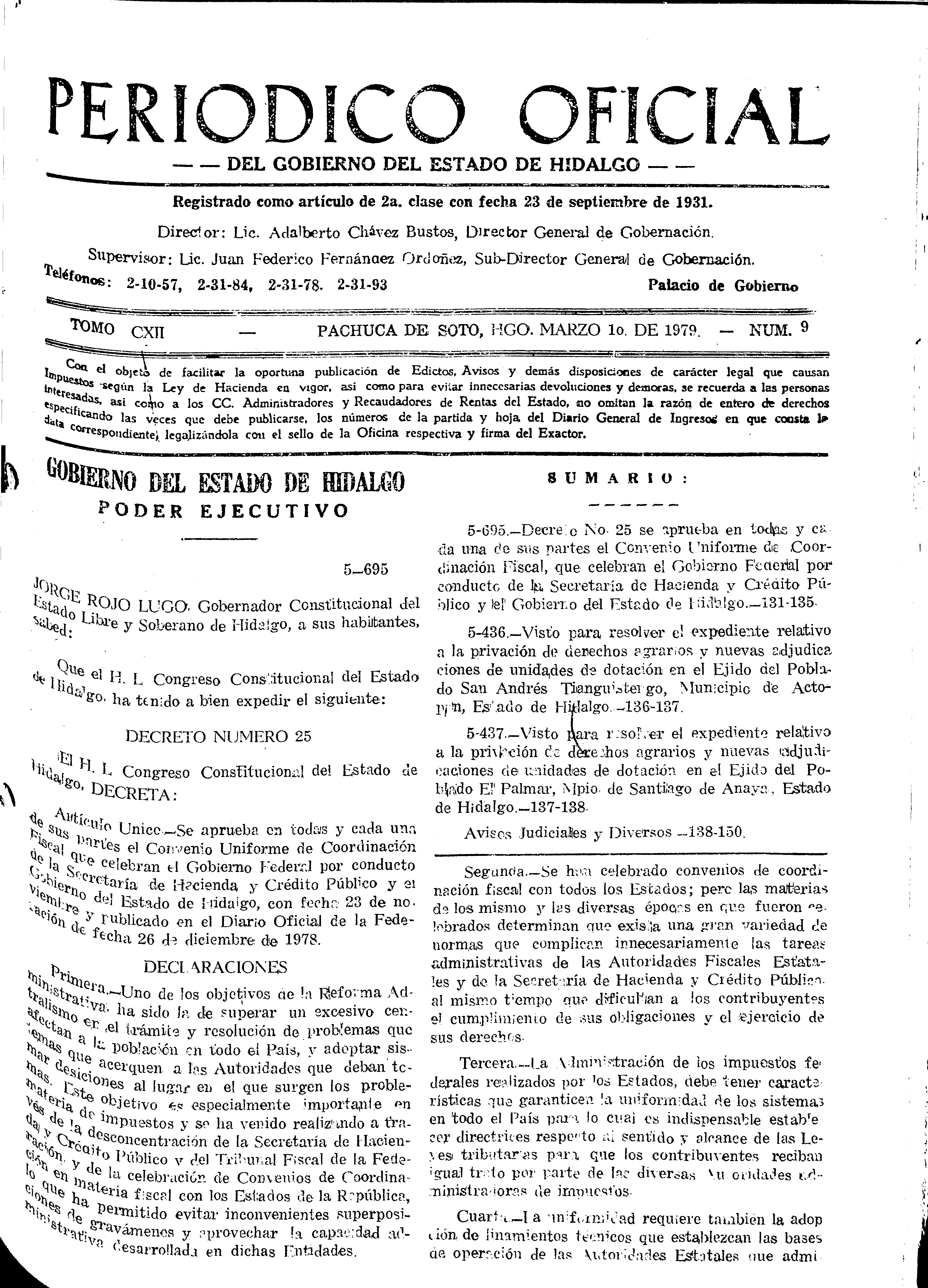Descargar Periódico Oficial Ordinario 0 del 01 de marzo de 1979