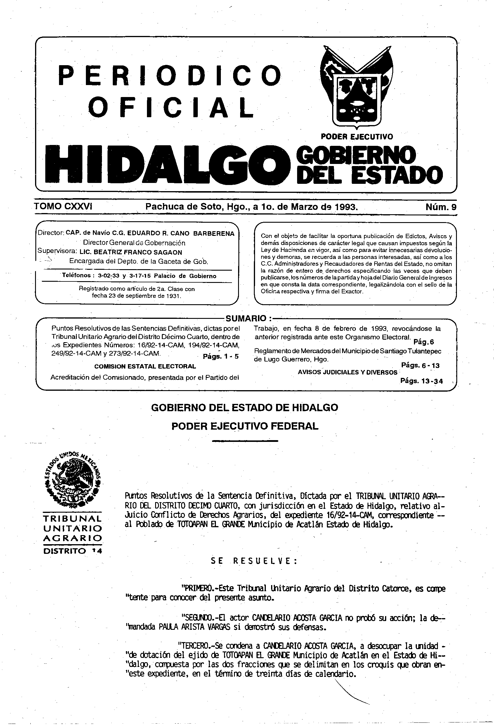 Descargar Periódico Oficial Ordinario 0 del 01 de marzo de 1993