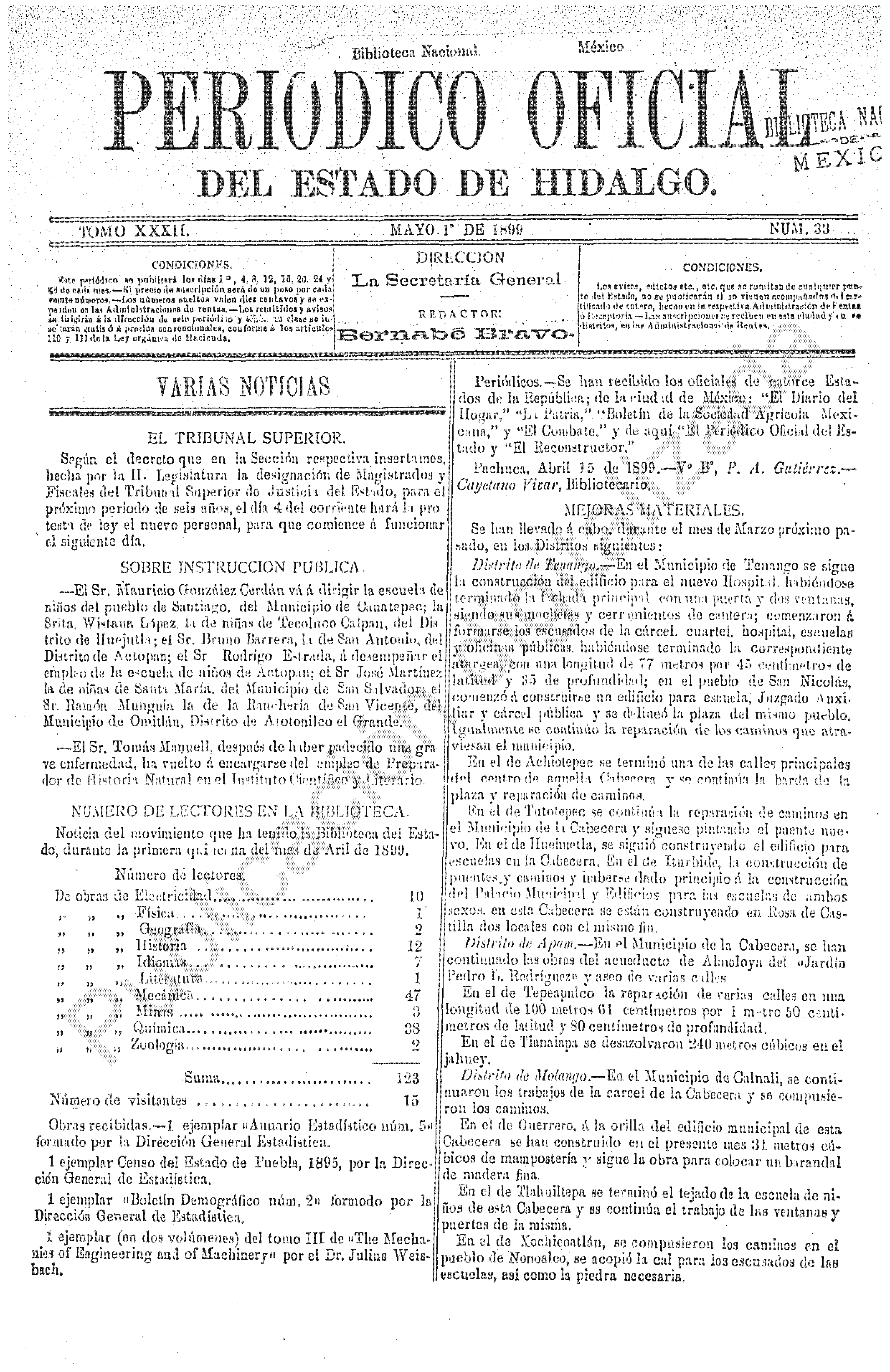 Descargar Periódico Oficial Ordinario 0 del 01 de mayo de 1899Tamaño 789.88 KB