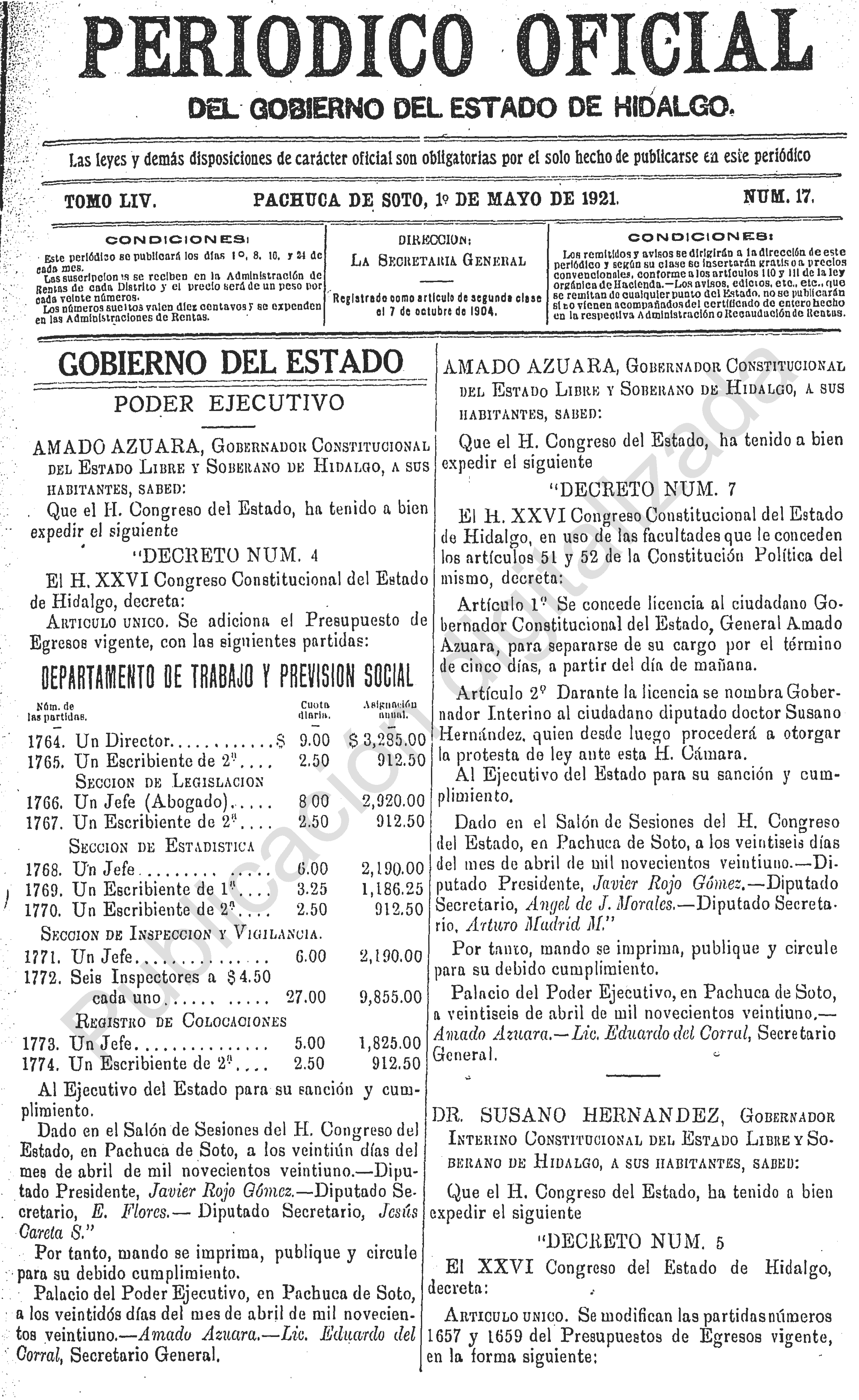Descargar Periódico Oficial Ordinario 0 del 01 de mayo de 1921El portal web del Periódico Oficial del Estado de hidalgo es el único medio de difusión oficial del Gobierno del Estado de Hidalgo