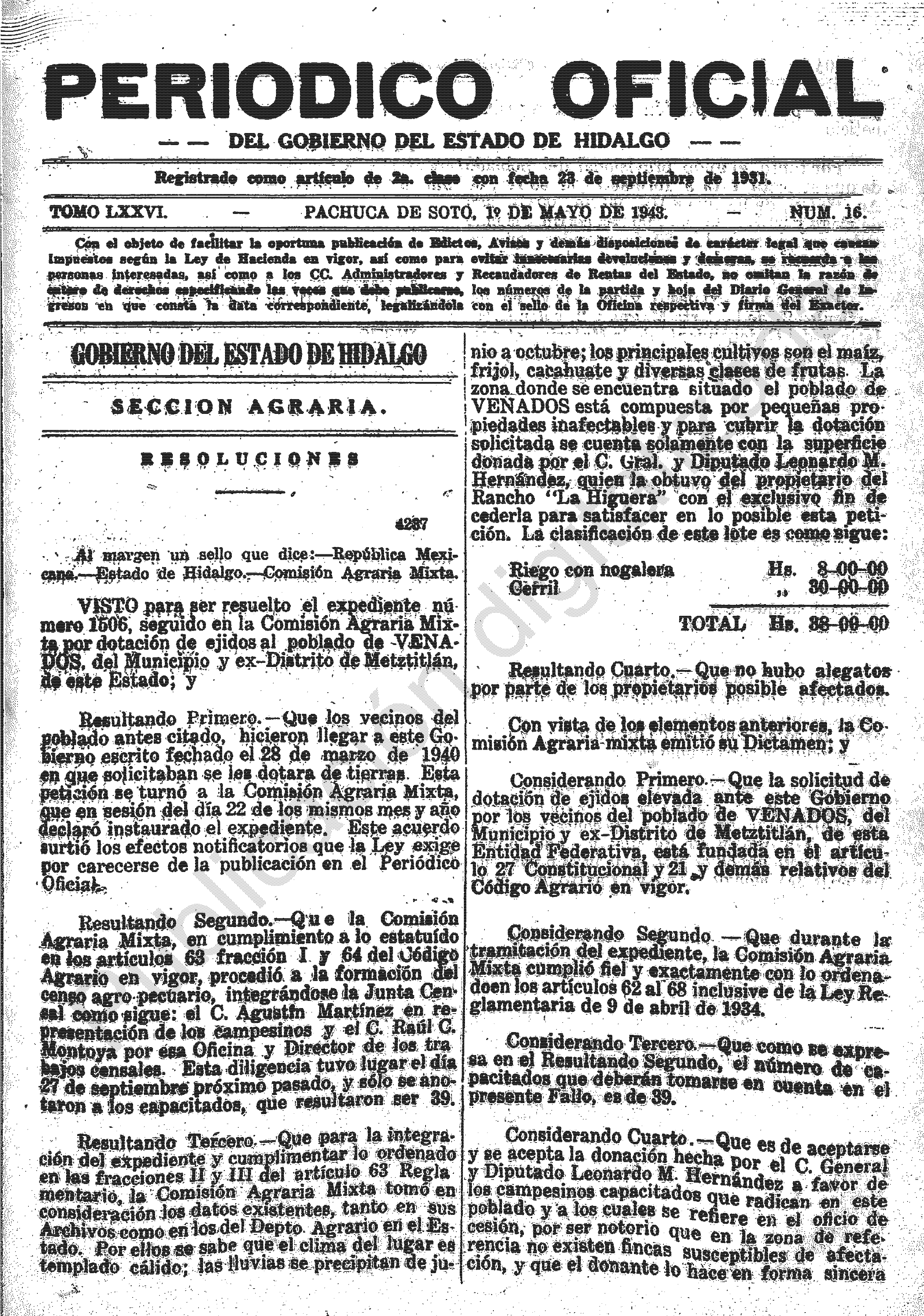 Descargar Periódico Oficial Ordinario 0 del 01 de mayo de 1943