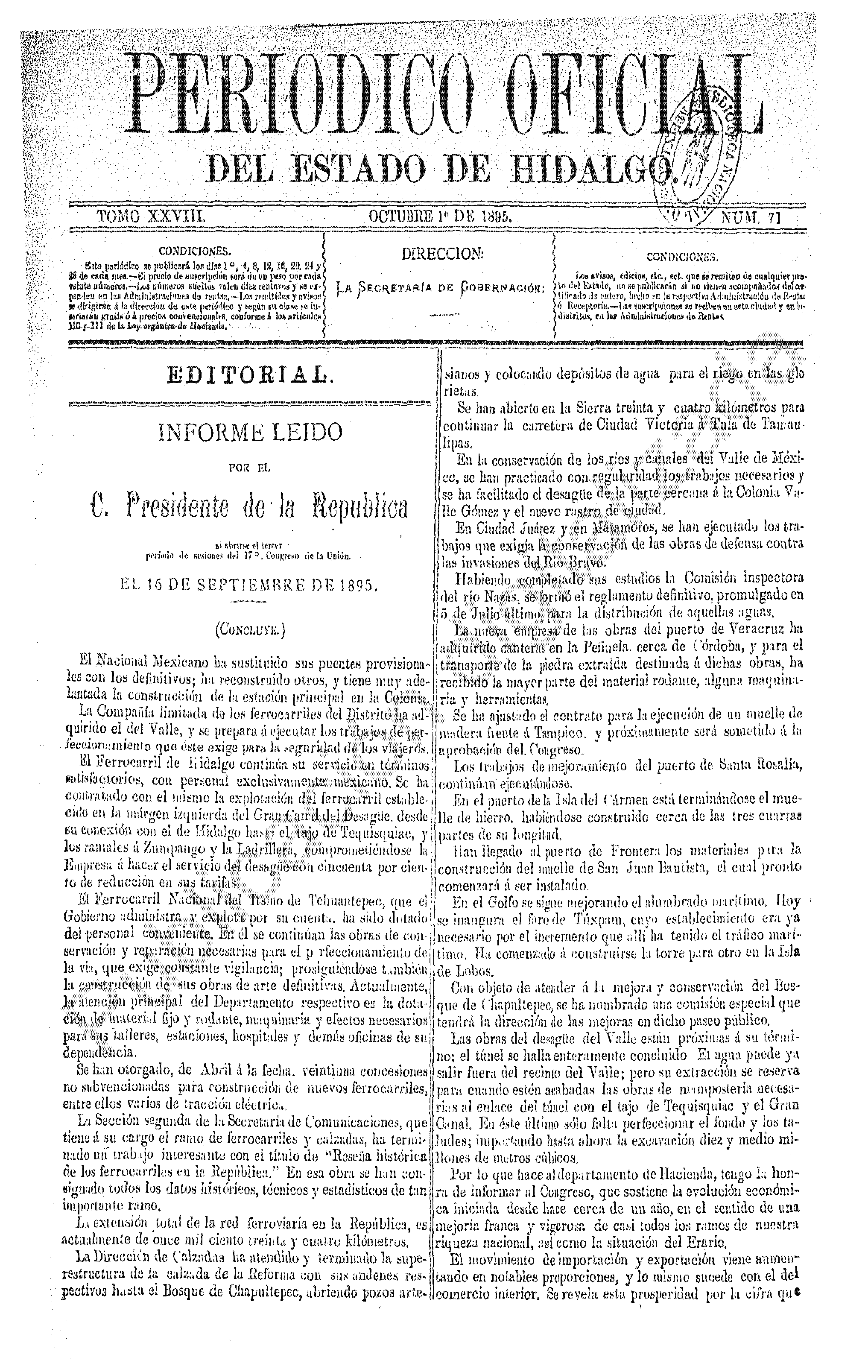 Periódico Oficial Ordinario 0 del 01 de octubre de 1895