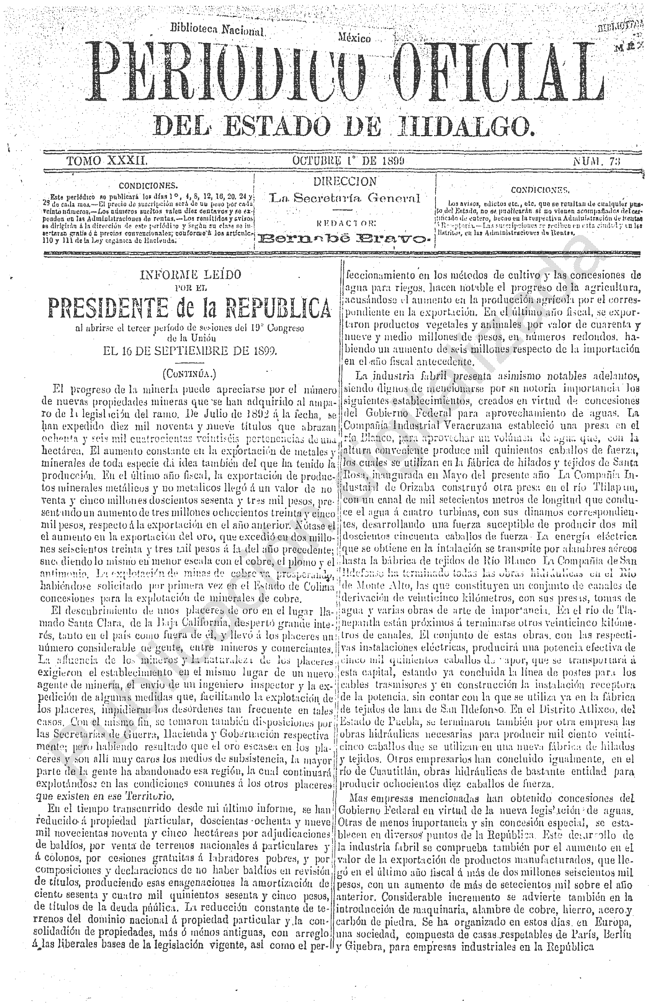 Descargar Periódico Oficial Ordinario 0 del 01 de octubre de 1899Tamaño 850.20 KB